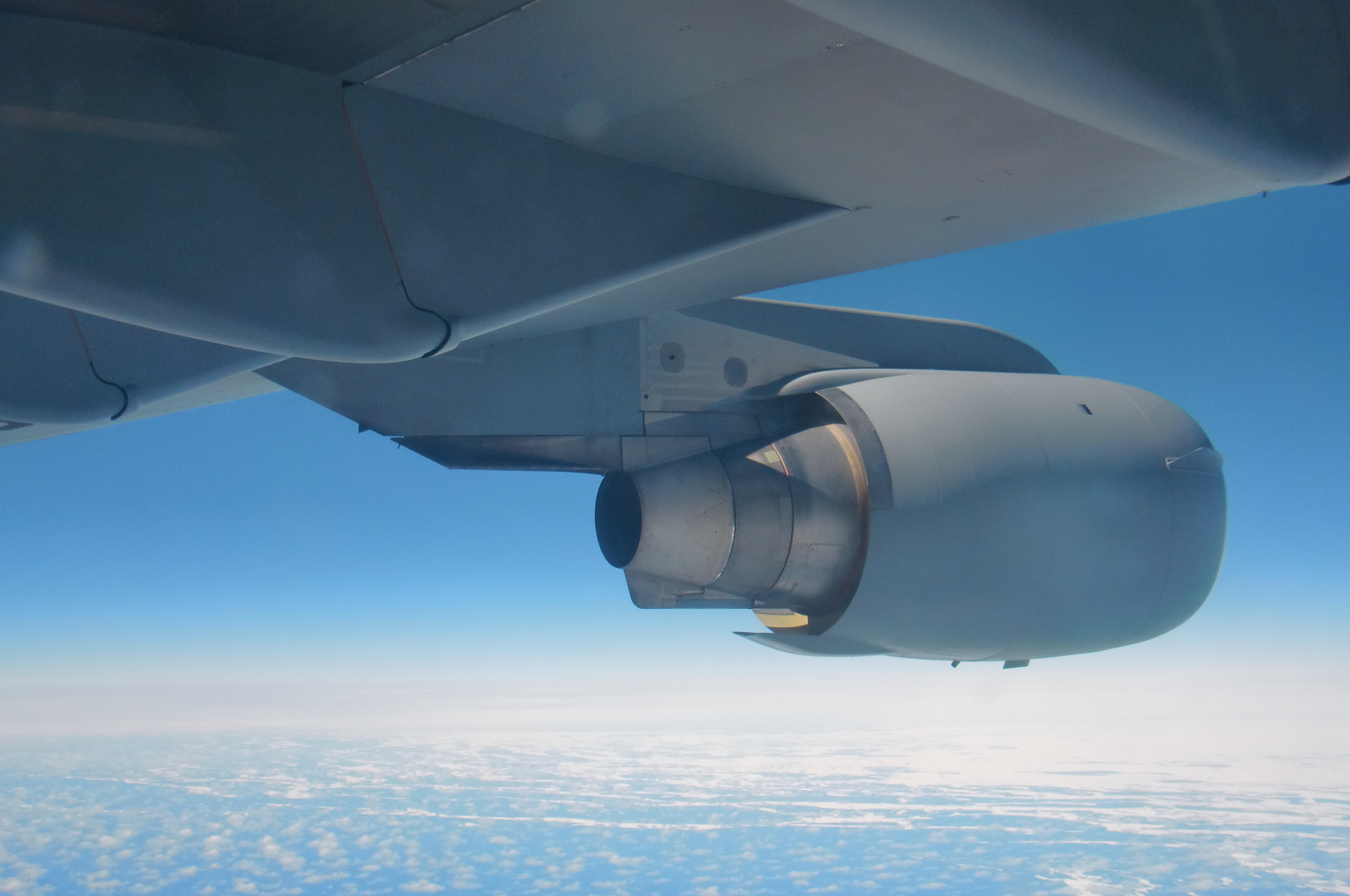 The engine of C-17 aircraft during the flight from Christchurch, New Zealand to Antarctica.