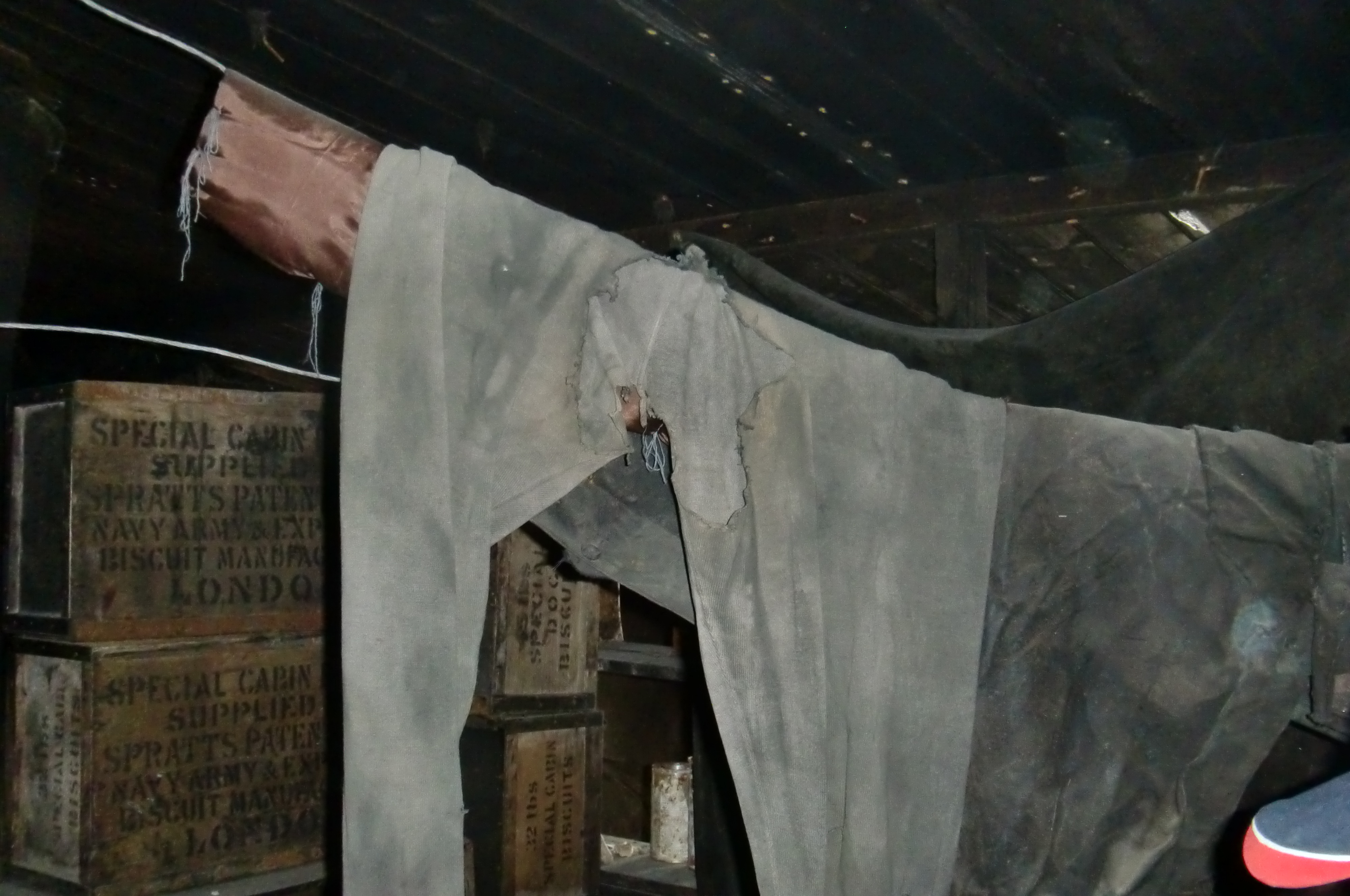 Some clothing used by the men on the Scott Expedition, hung up to dry. McMurdo Station, Antarctica.