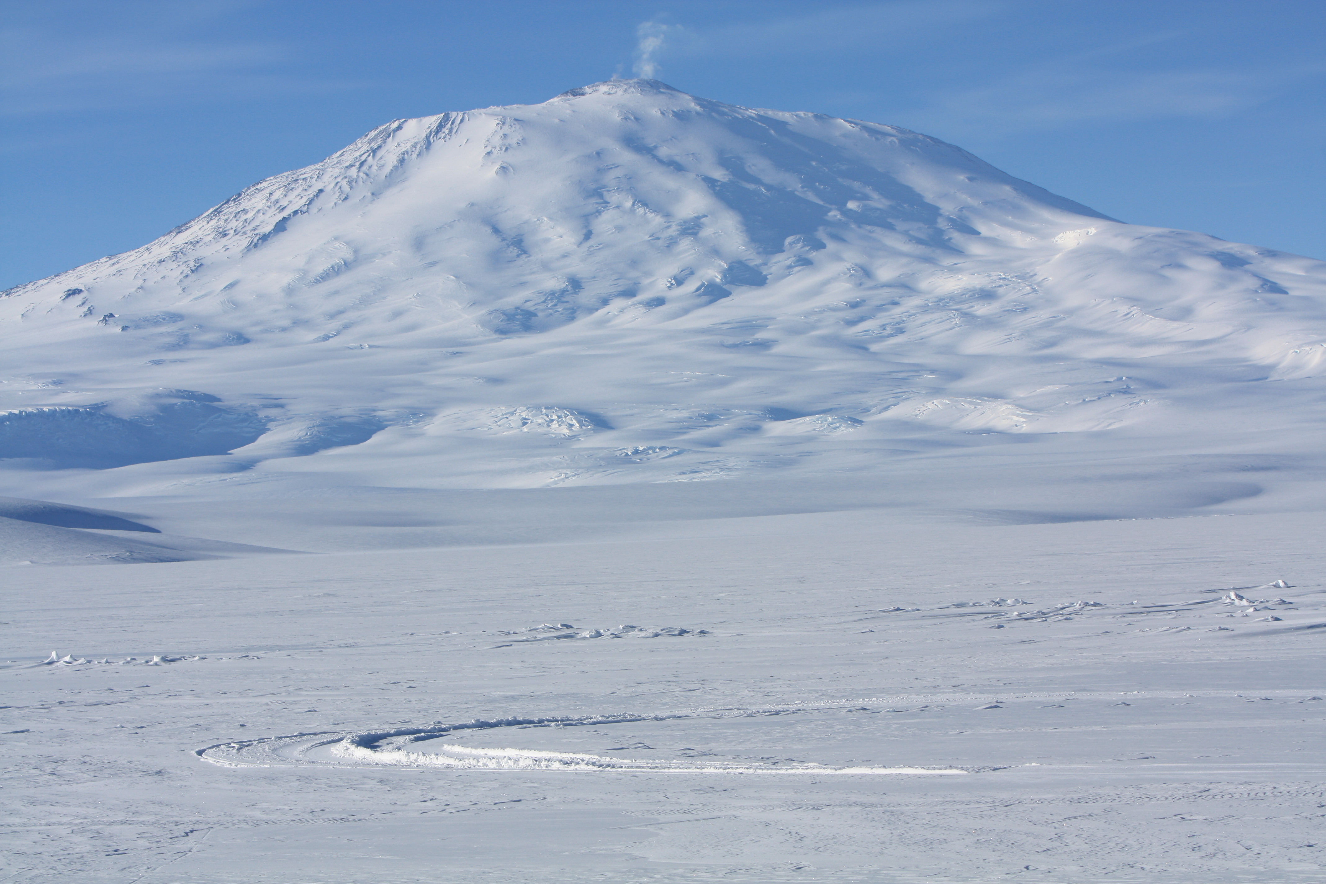 Mount Erebus, the southernmost active volcano on Earth, that stands at 12,488ft tall. McMurdo Station, Antarctica.