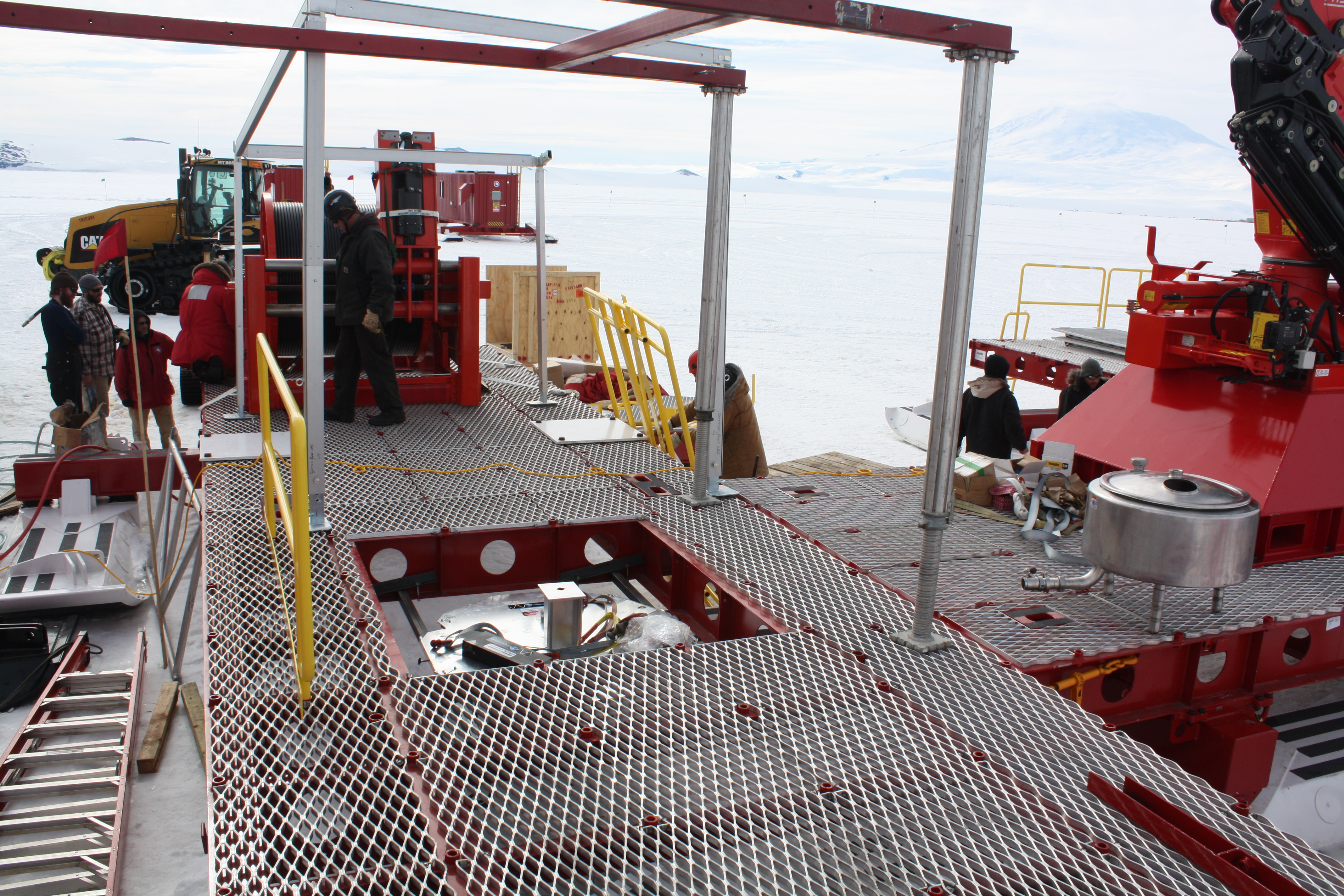 The work platform and drilling area on the LARS (Launch and Recovery Sled). McMurdo Station, Antarctica.