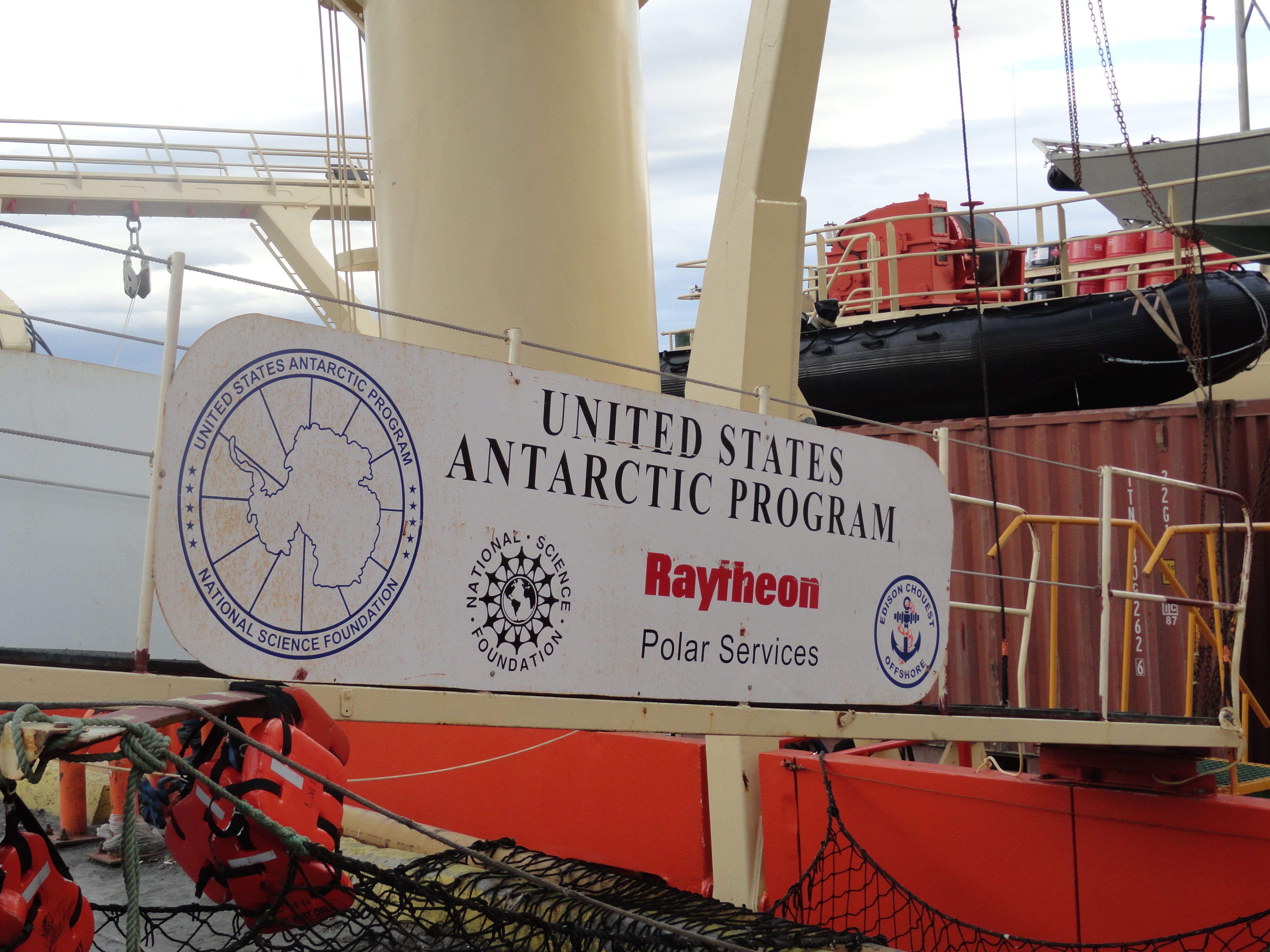 Nell Herrmann's view of the gangway of the Laurence M. Gould as she boards in Punta Arenas, Chile.