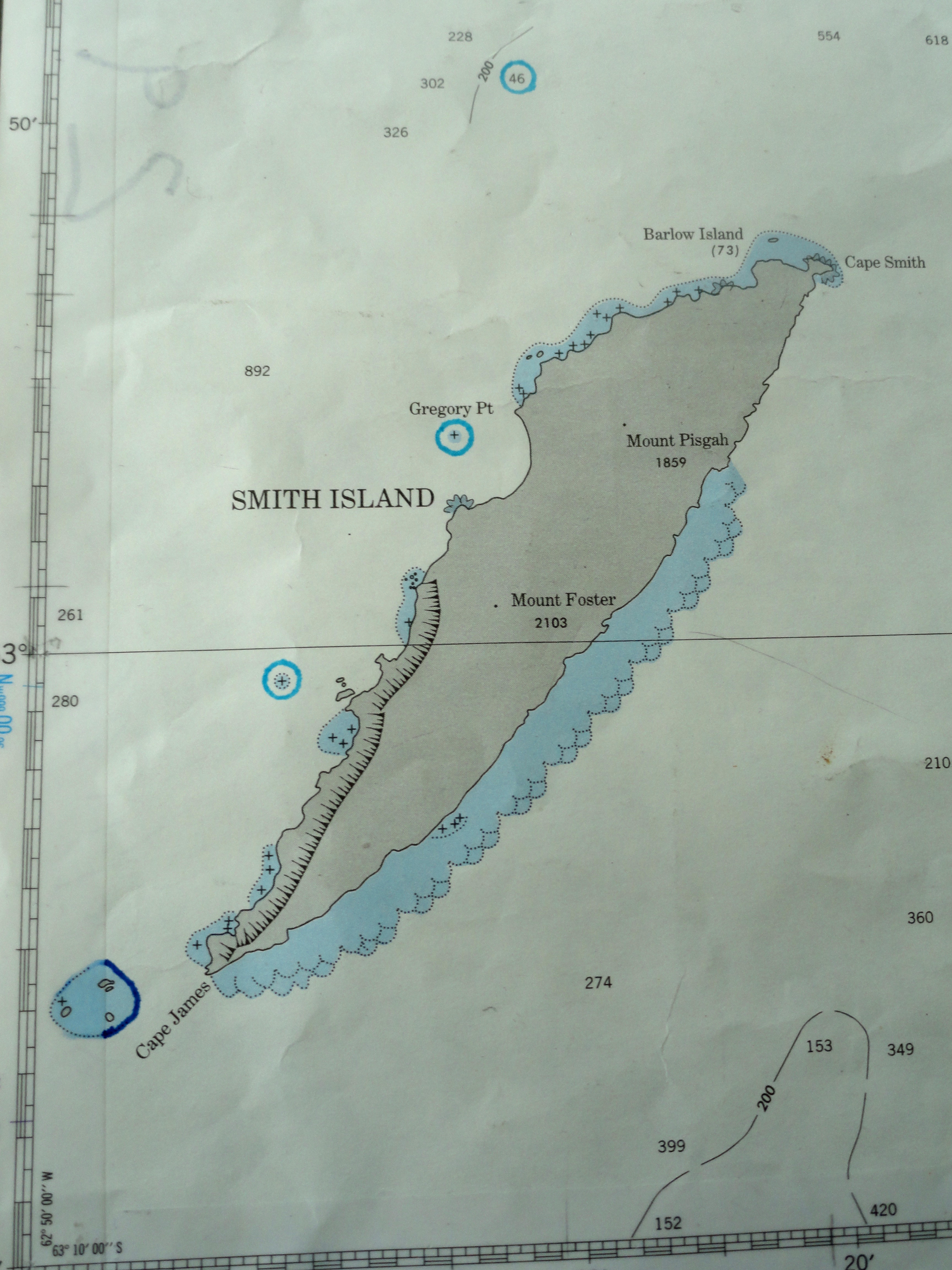 A nautical chart that shows Smith Island, Nell Herrmann's first view of Antarctica. Aboard the RV Laurence M. Gould icebreaker in the Drake Passage.