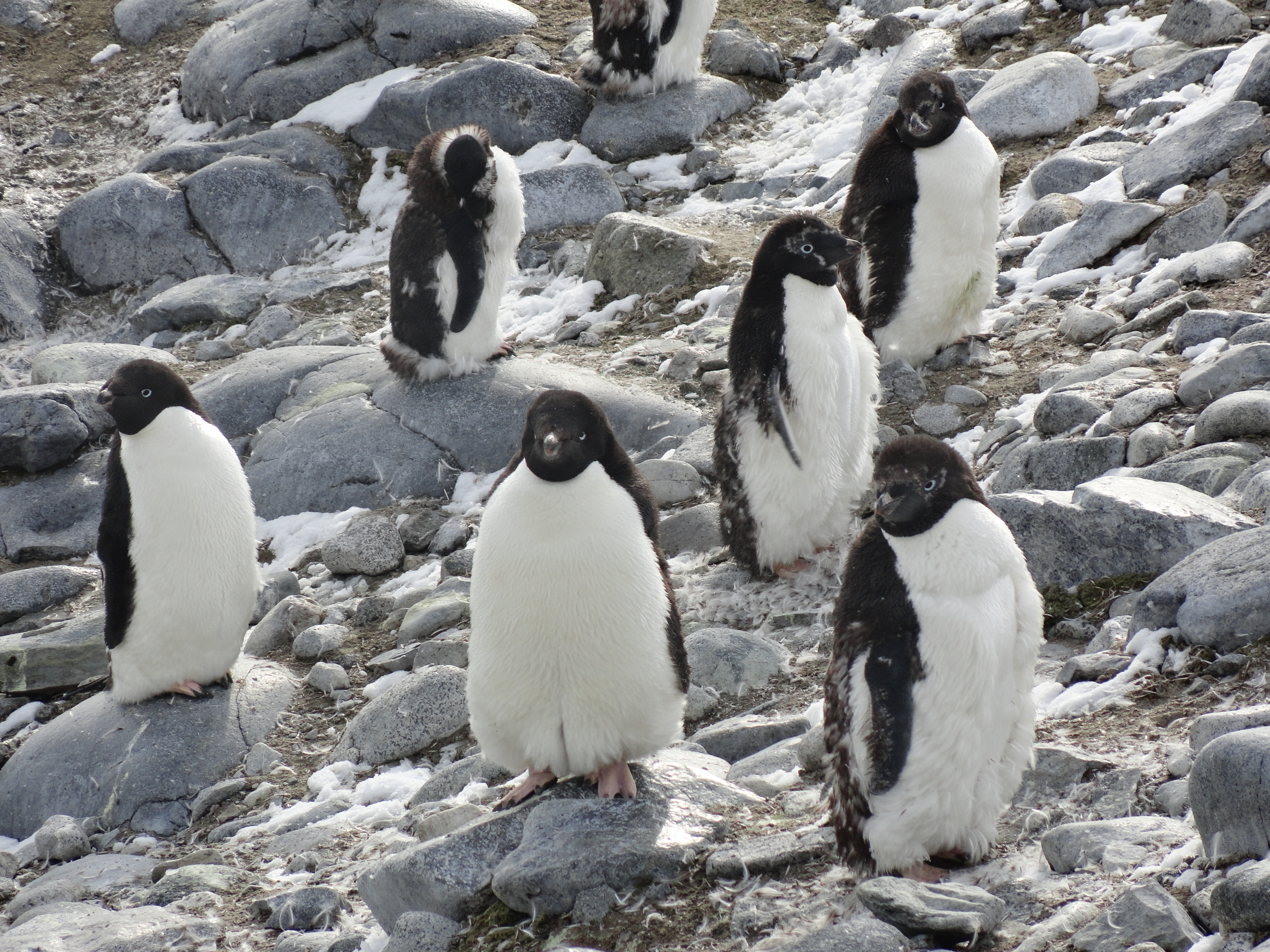 Molting Adélie penguins. Palmer Station, Antarctica.