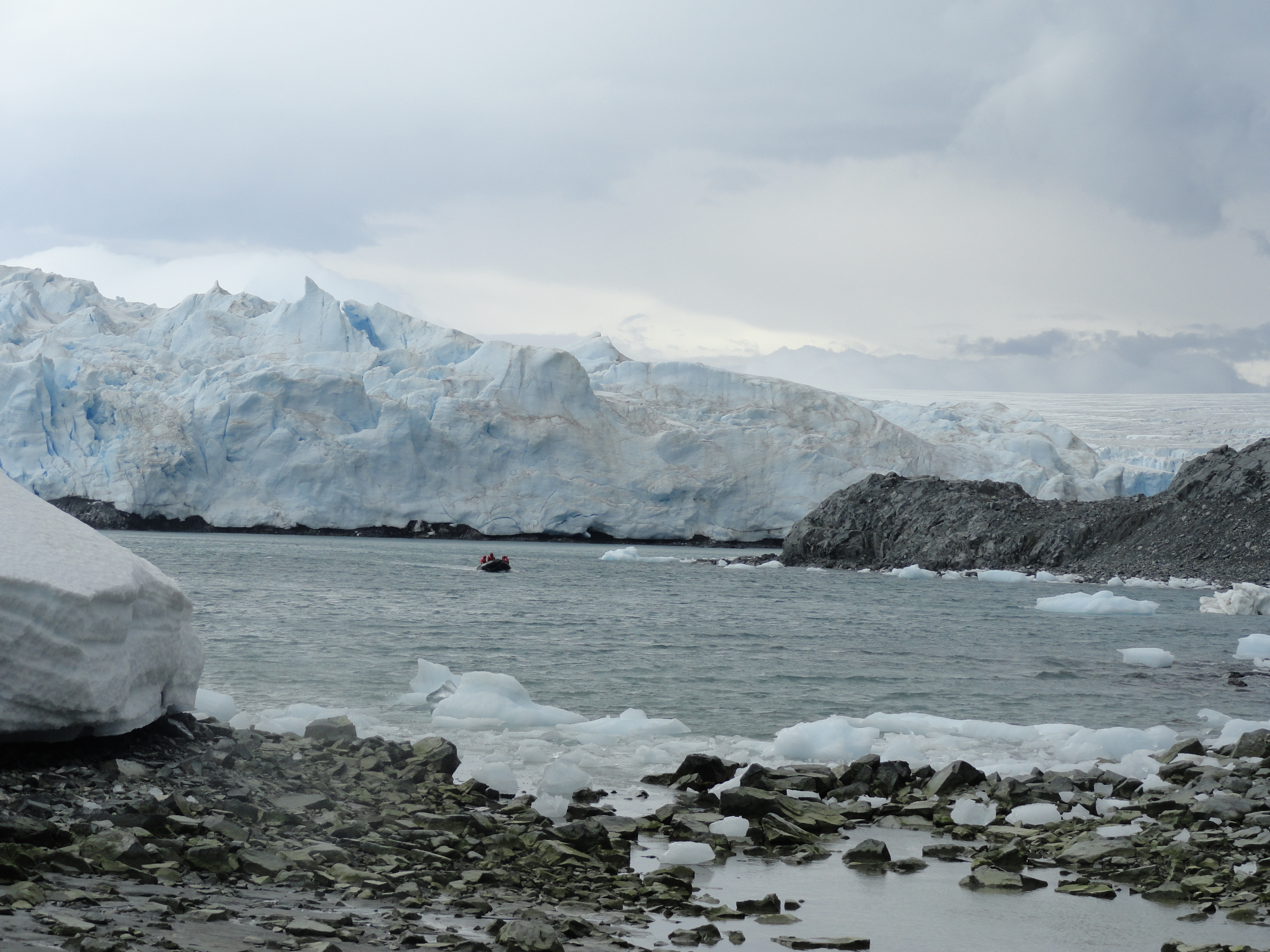 Scientists arrive at Amsler Island by zodiac. Palmer Station, Antarctica.