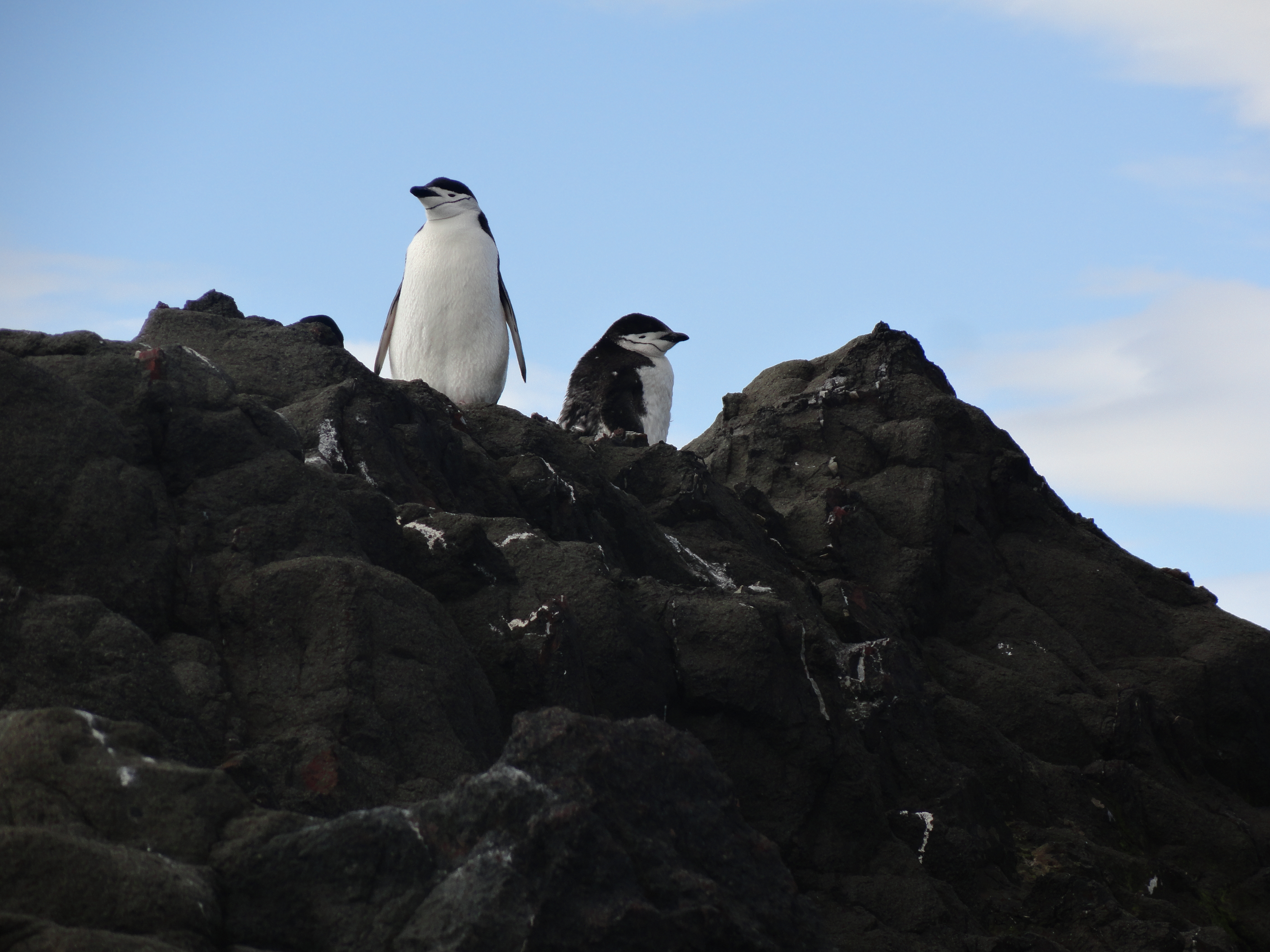 Chinstrap penguins at the Arctowski research station. King George Island, Antarctica.