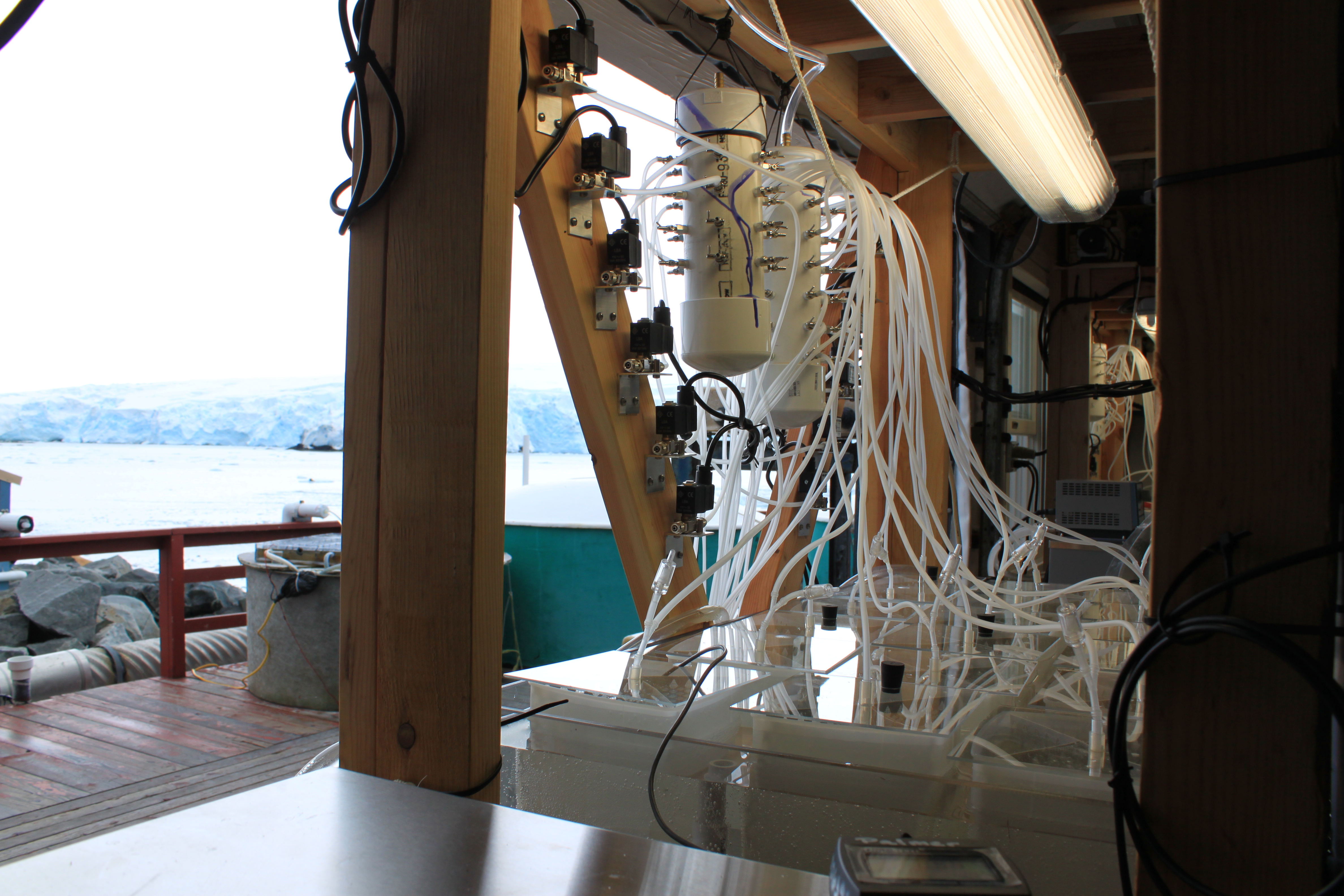 The aqua medic table with Marr Glacier in the background. Palmer Station, Antarctica.