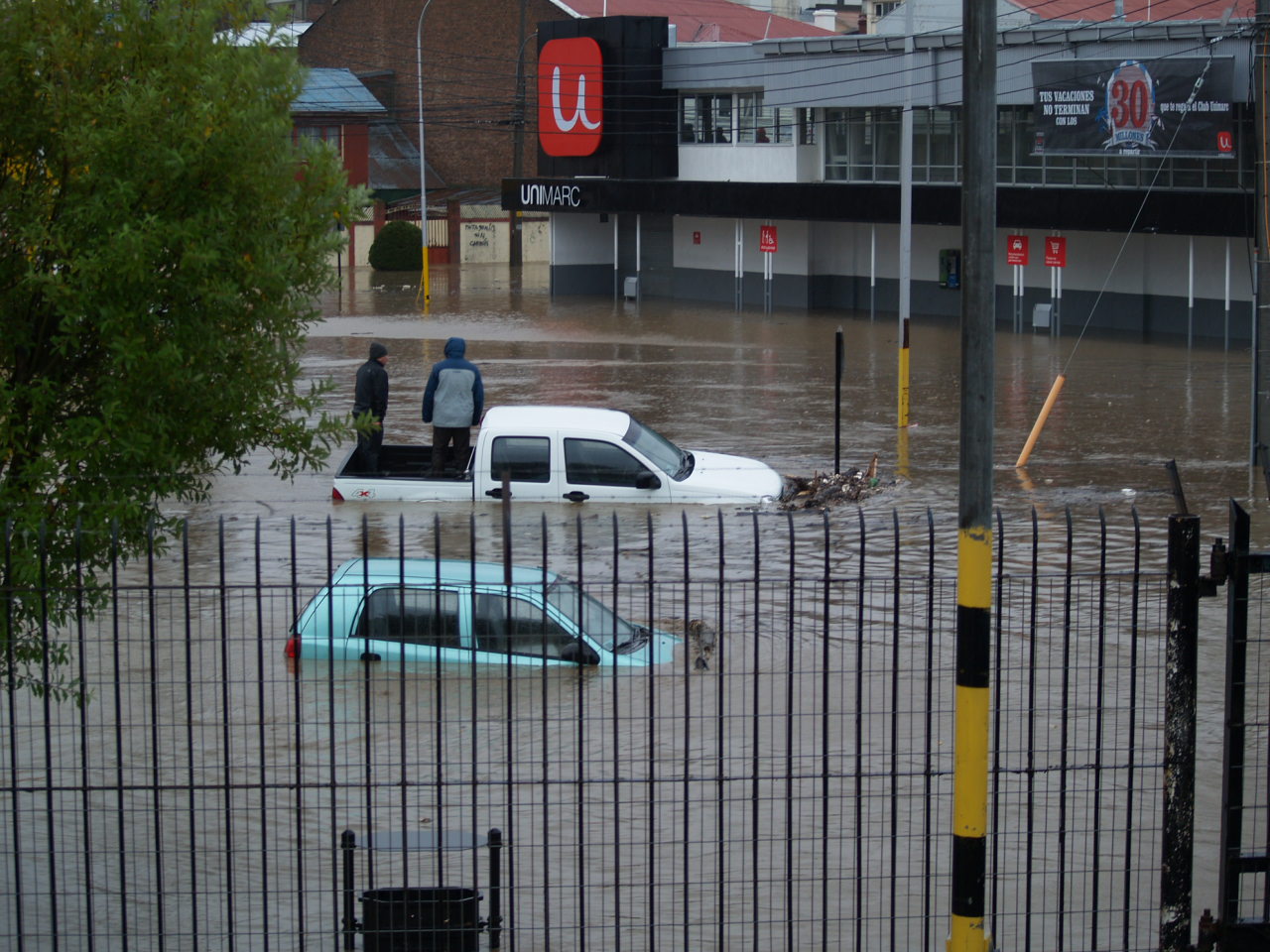 A flooded grocery store parking lot in Punta Arenas, Chile.