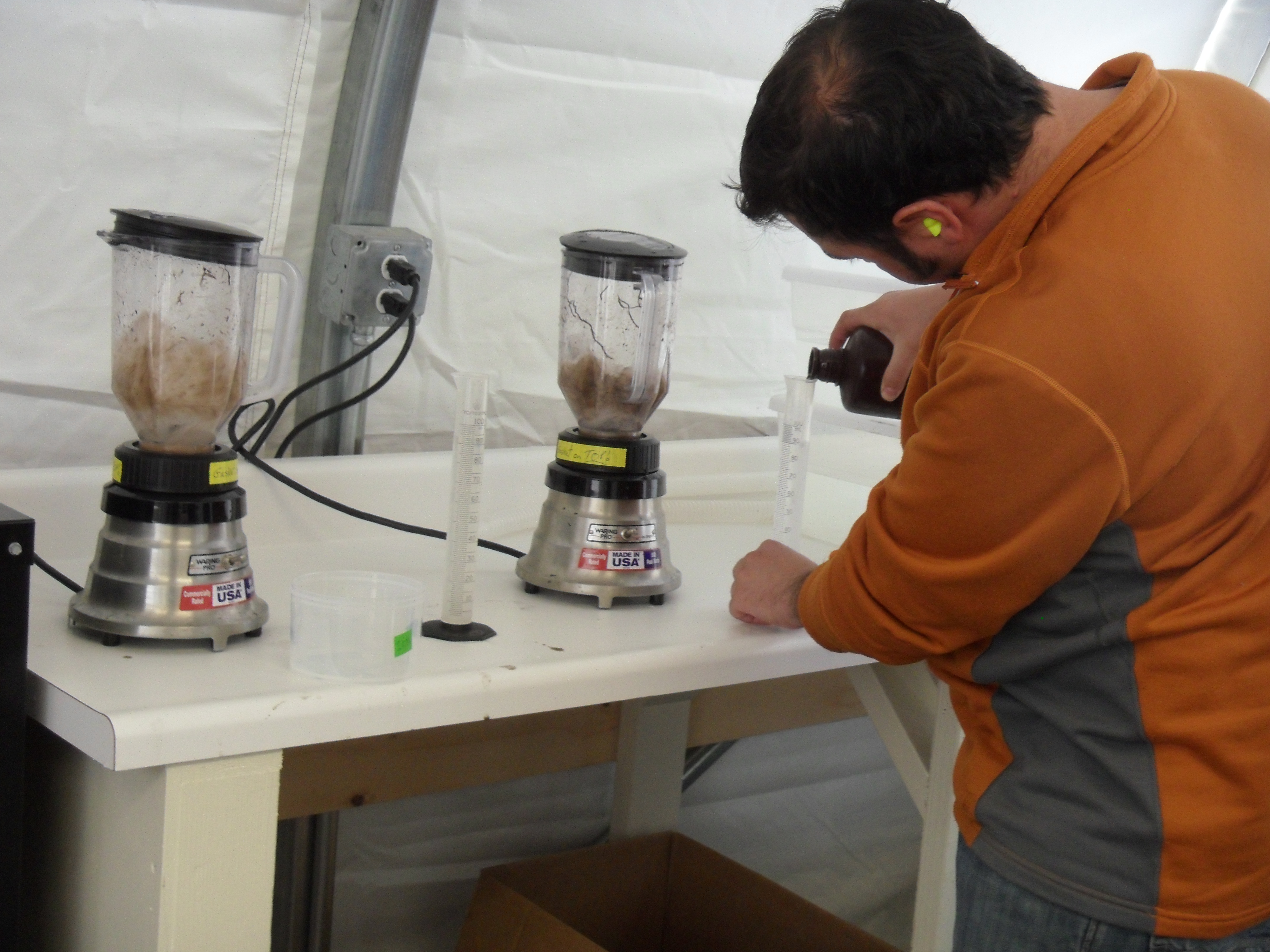 Matt Wallenstein prepares soil slurry for enyzme assays. In Lab 6 at Toolik Field Station, Alaska.
