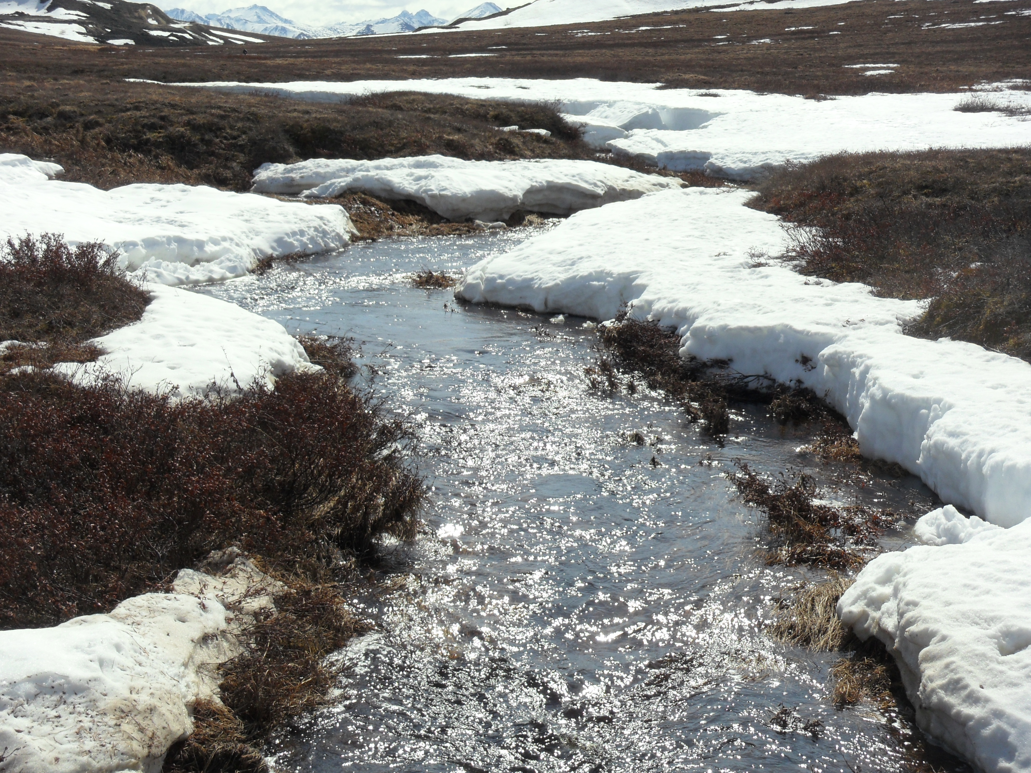 A view of the stream that is crossed on the way to the plots. At the snowmelt project plots north of Toolik Field Station, Alaska.