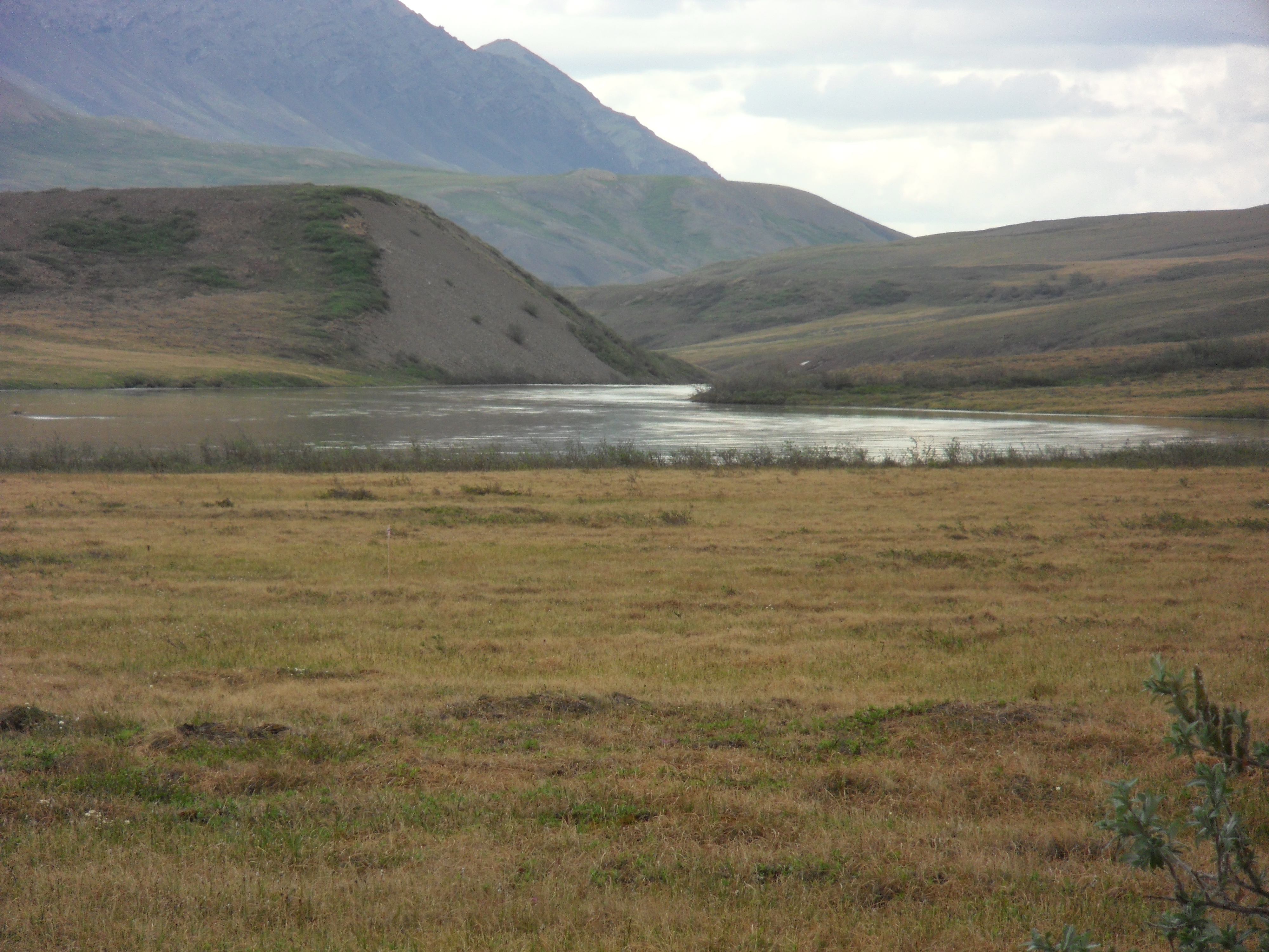The Atigun River flows downstream toward the Atigun River Gorge and the Arctic National Wildlife Refuge. Atigun River Valley, Alaska.