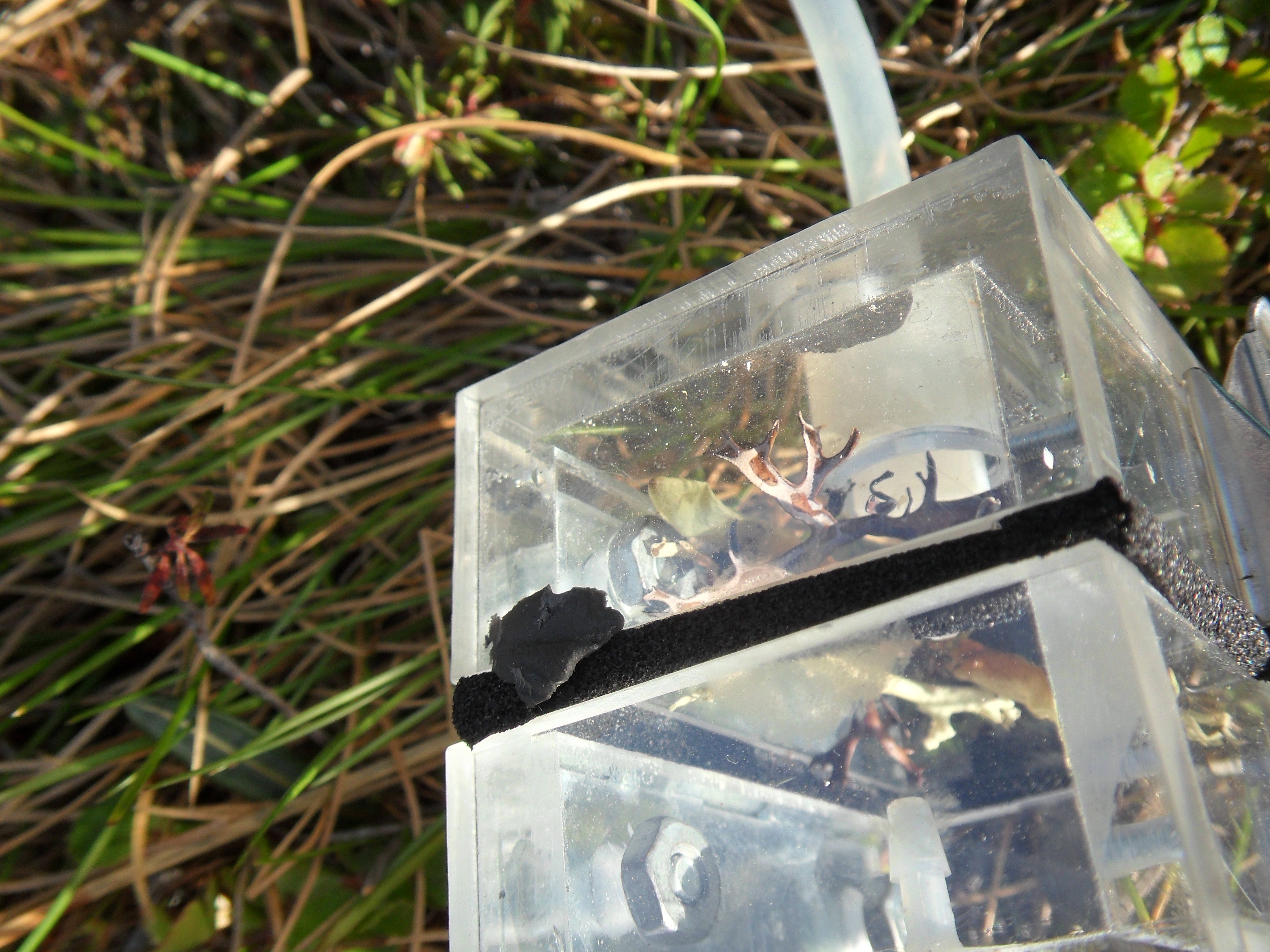 A lichen is placed in the cuvette to measure the amount of CO2 coming off of the lichen. At the Imnavait Creek Permanent Vegetation Plots near Toolik Field Station, Alaska.