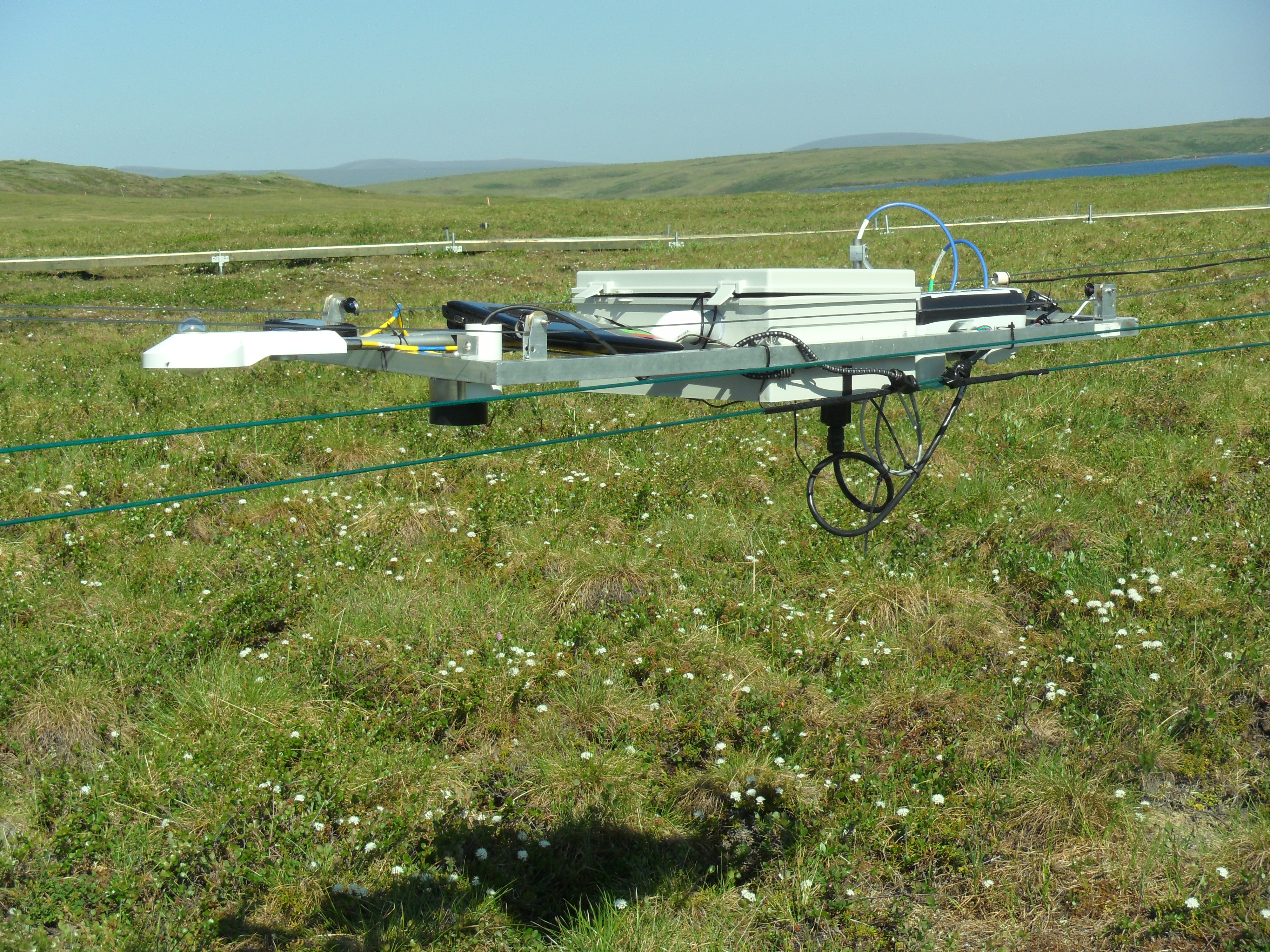 The NIMS (Networked Info Mechanical System) trolley glides over tussock tundra. Toolik Field Station, Alaska.