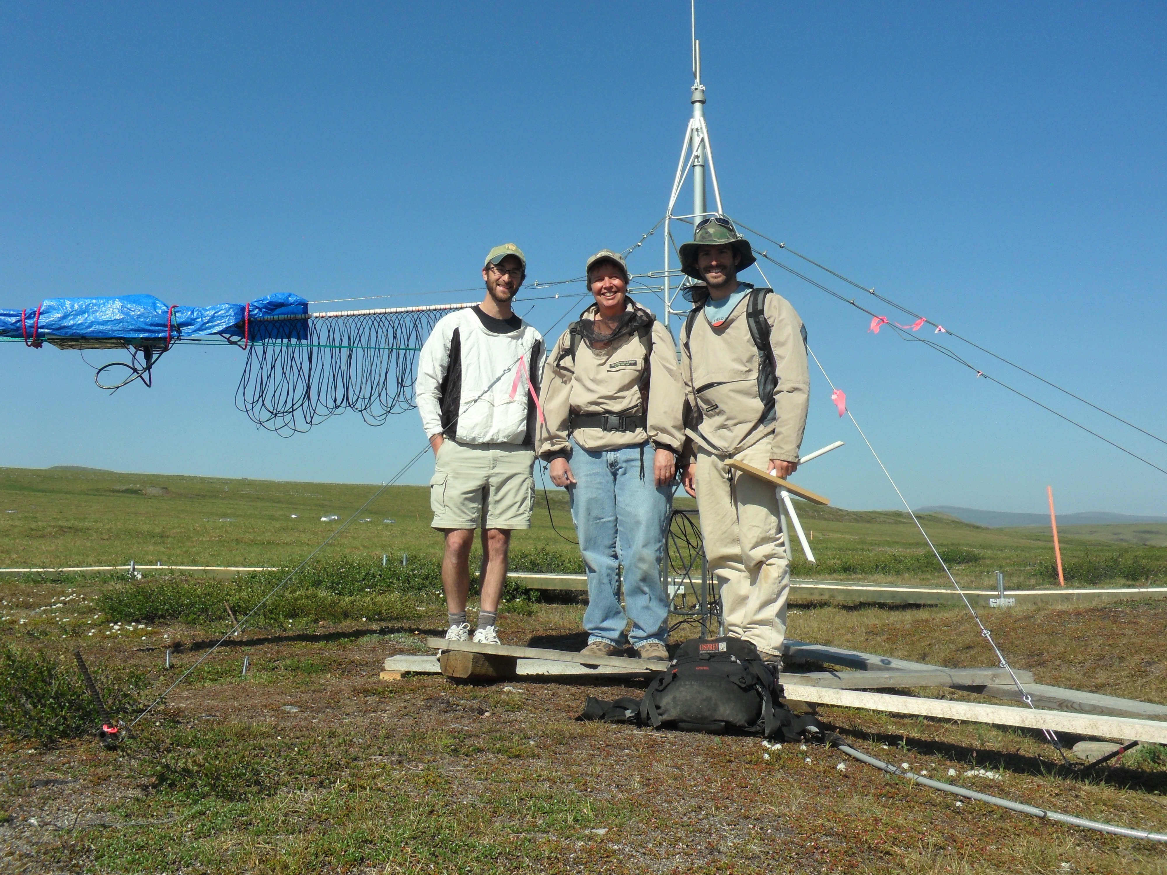 Nate Healey, Susan Steiner, and Jose Luciani at site of the tower for the NIMS (Networked Info Mechanical System) trolley. Toolik Field Station, Alaska.