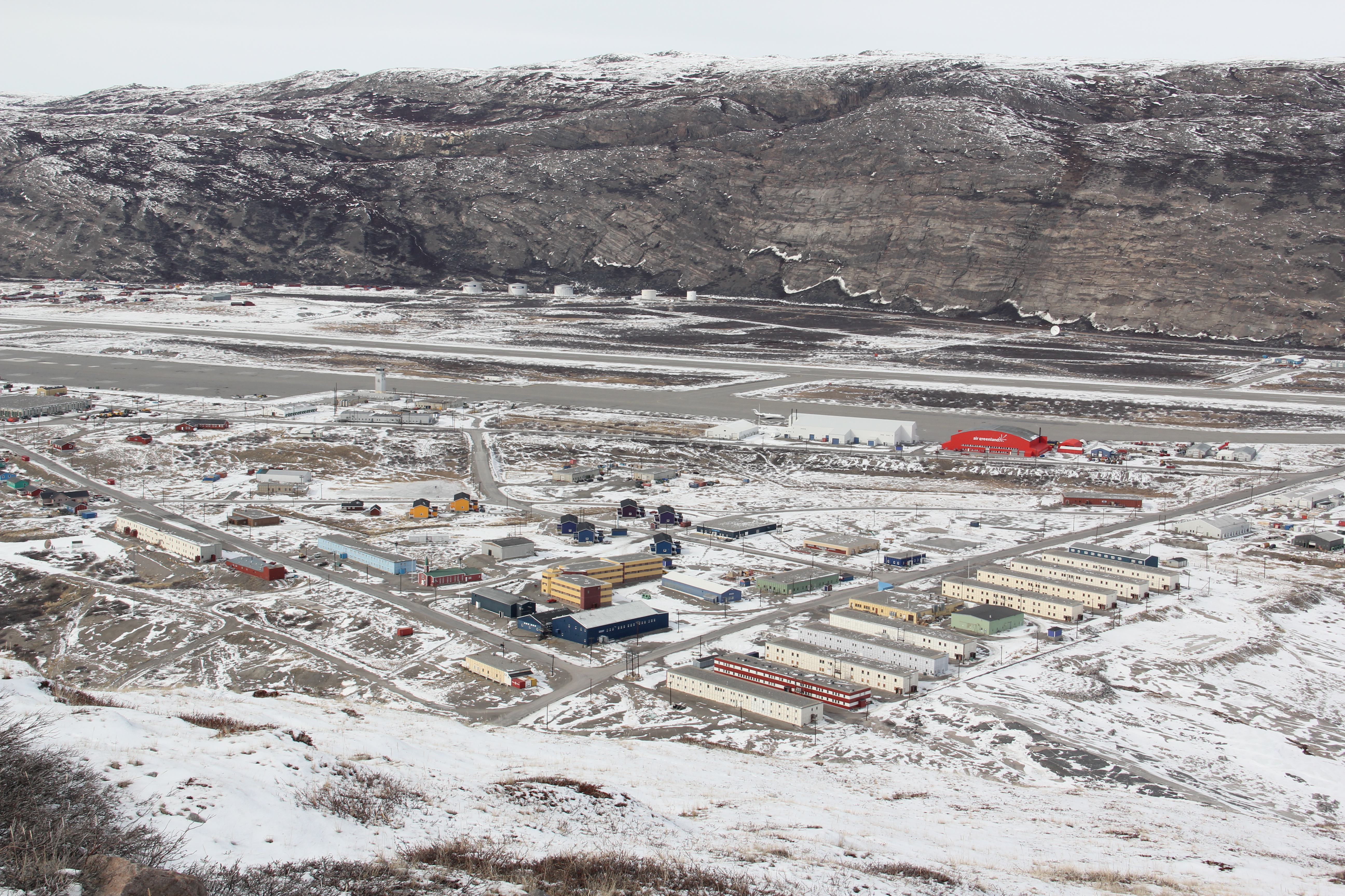 A view of Kangerlussuaq from the ridge overlooking the small community. Kangerlussuaq, Greenland.