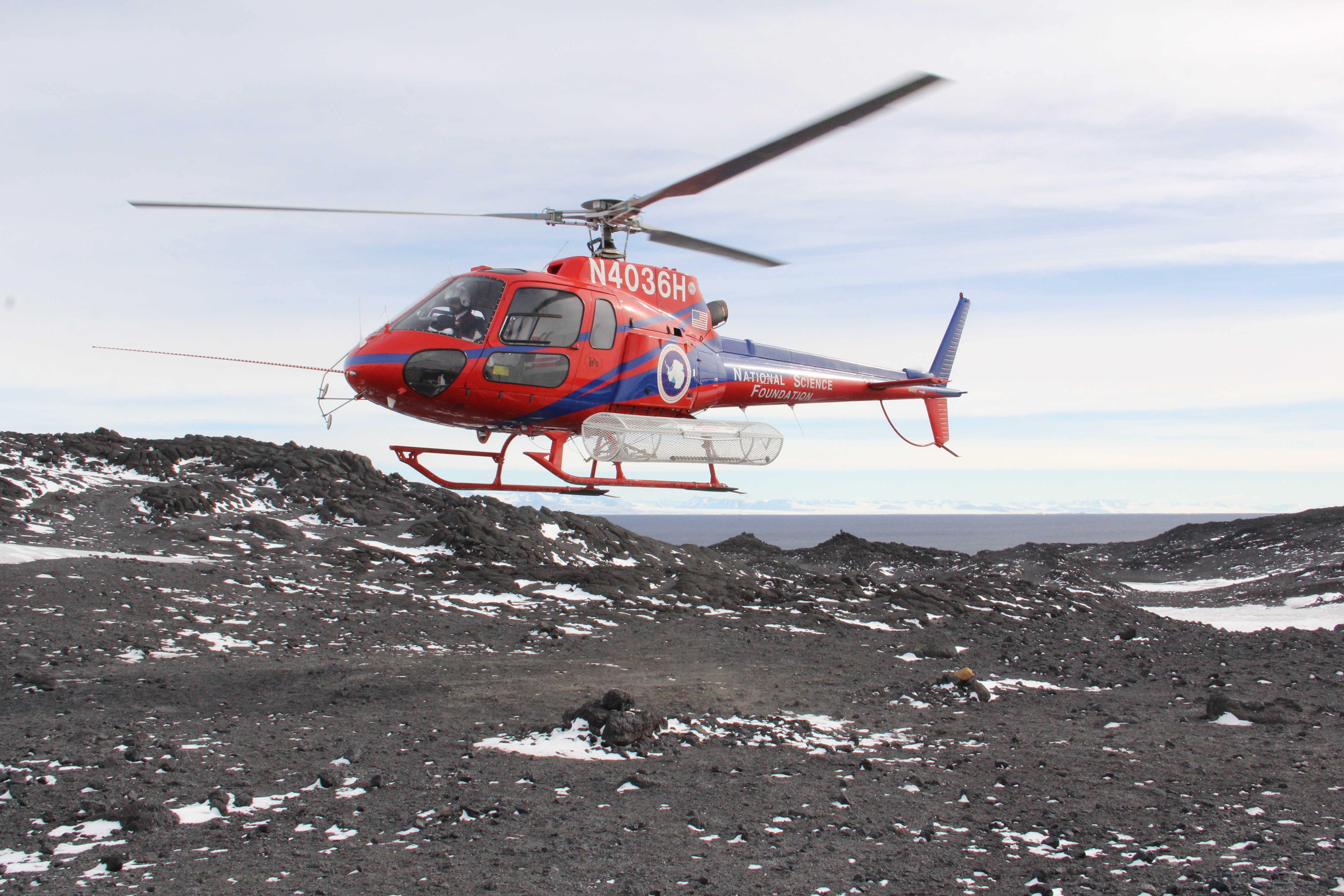 Tim Spuck: "It's not easy to get around Antarctica. It's as remote as it gets. You either get to Cape Royds by snowmobile or helicopter. I didn't have enough time to fit in required snow machine training, so I got a rare treat … flying into Cape Royds by helicopter." Cape Royds, Antarctica.