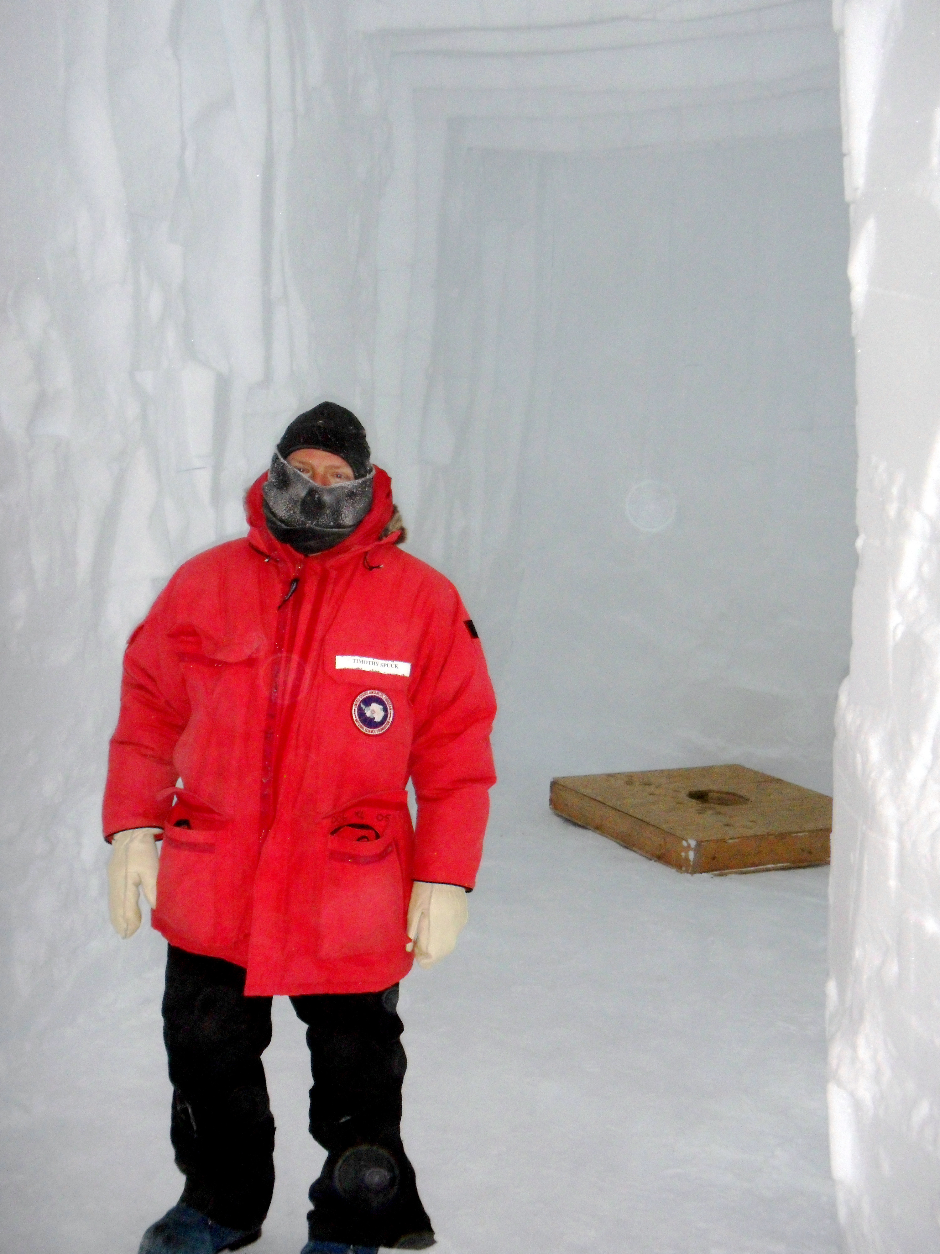 Tim Spuck stands outside of the site of the next South Pole Station water well. Amundsen-Scott South Pole Station, Antarctica.