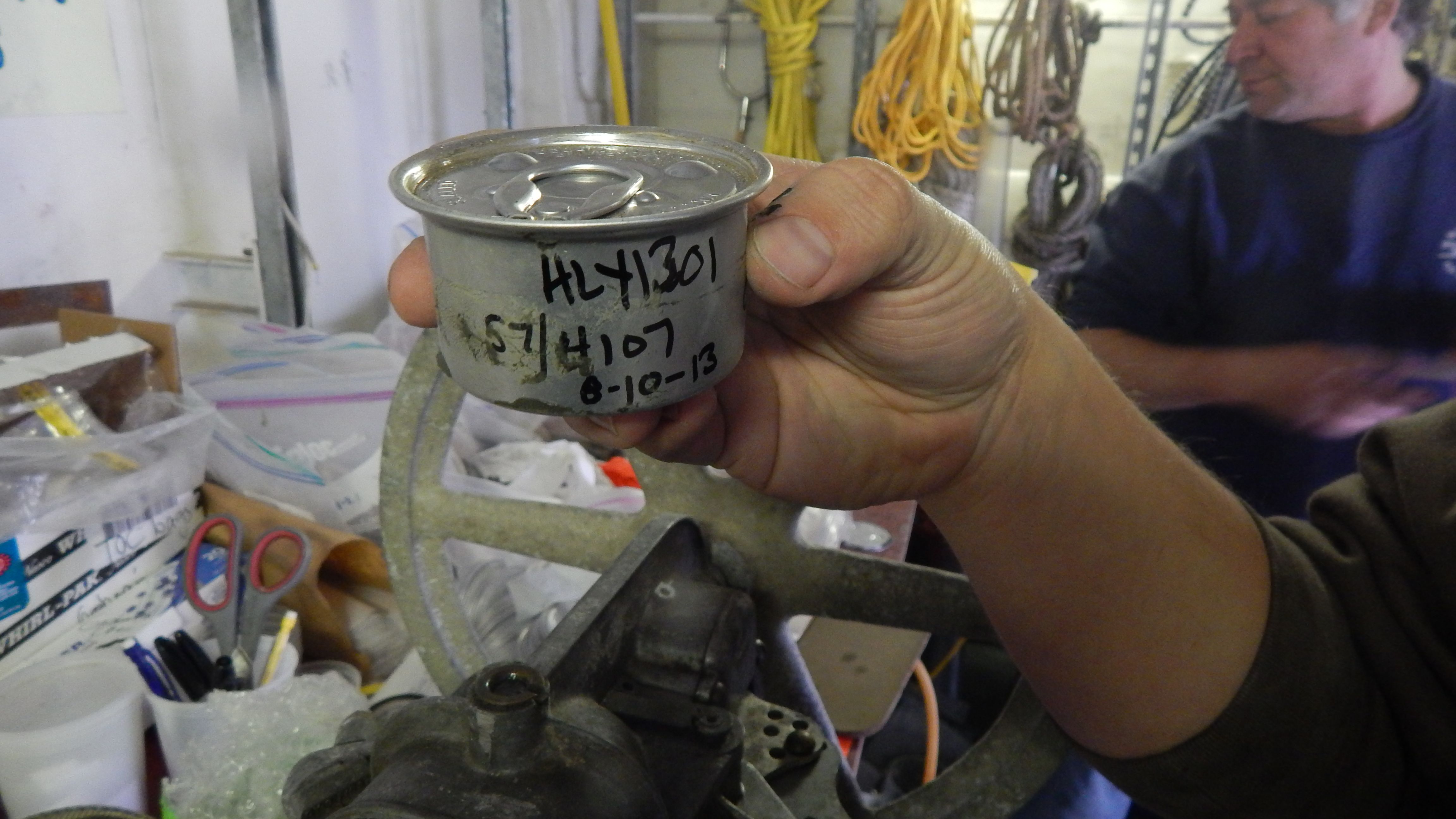 The final product is a sealed can of sediment. Aboard the USCGC Healy icebreaker on the Chukchi Sea.