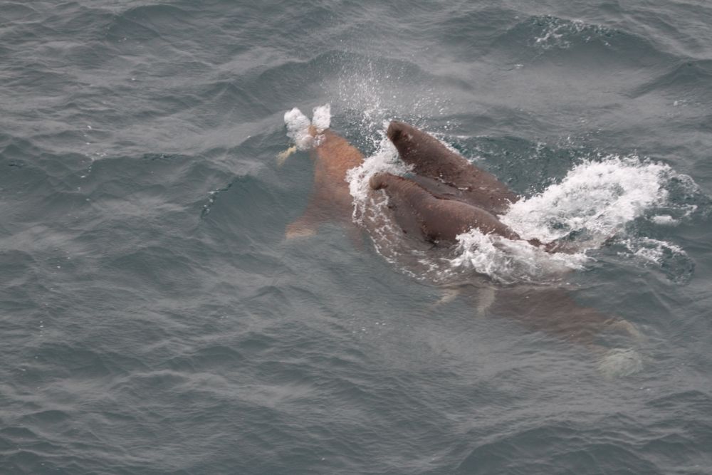 A female walrus with two calves. Aboard the USCGC Healy icebreaker on the Chukchi Sea.
