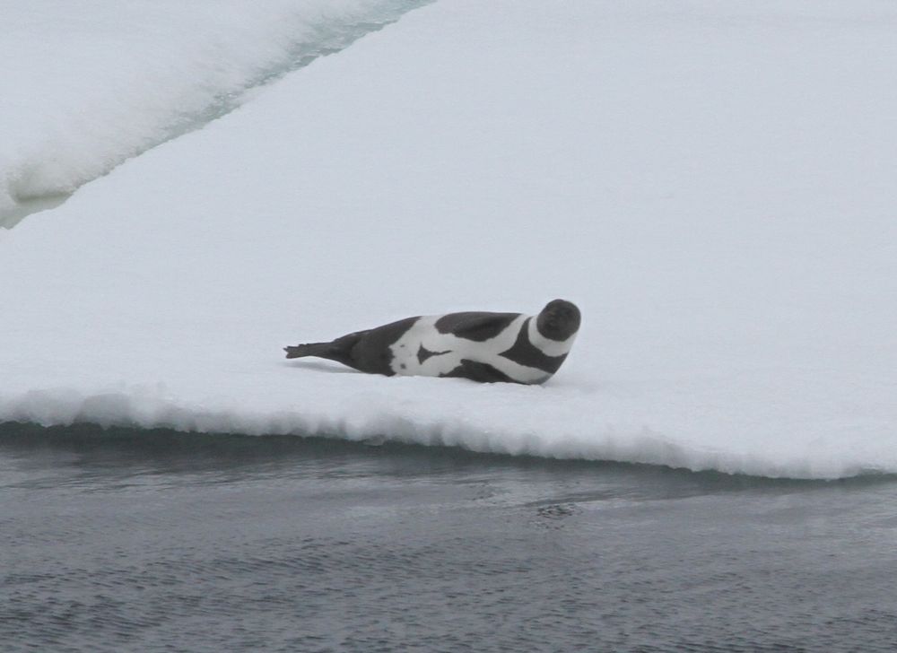 A ribbon seal seen from aboard the USCGC Healy icebreaker on the Chukchi Sea.