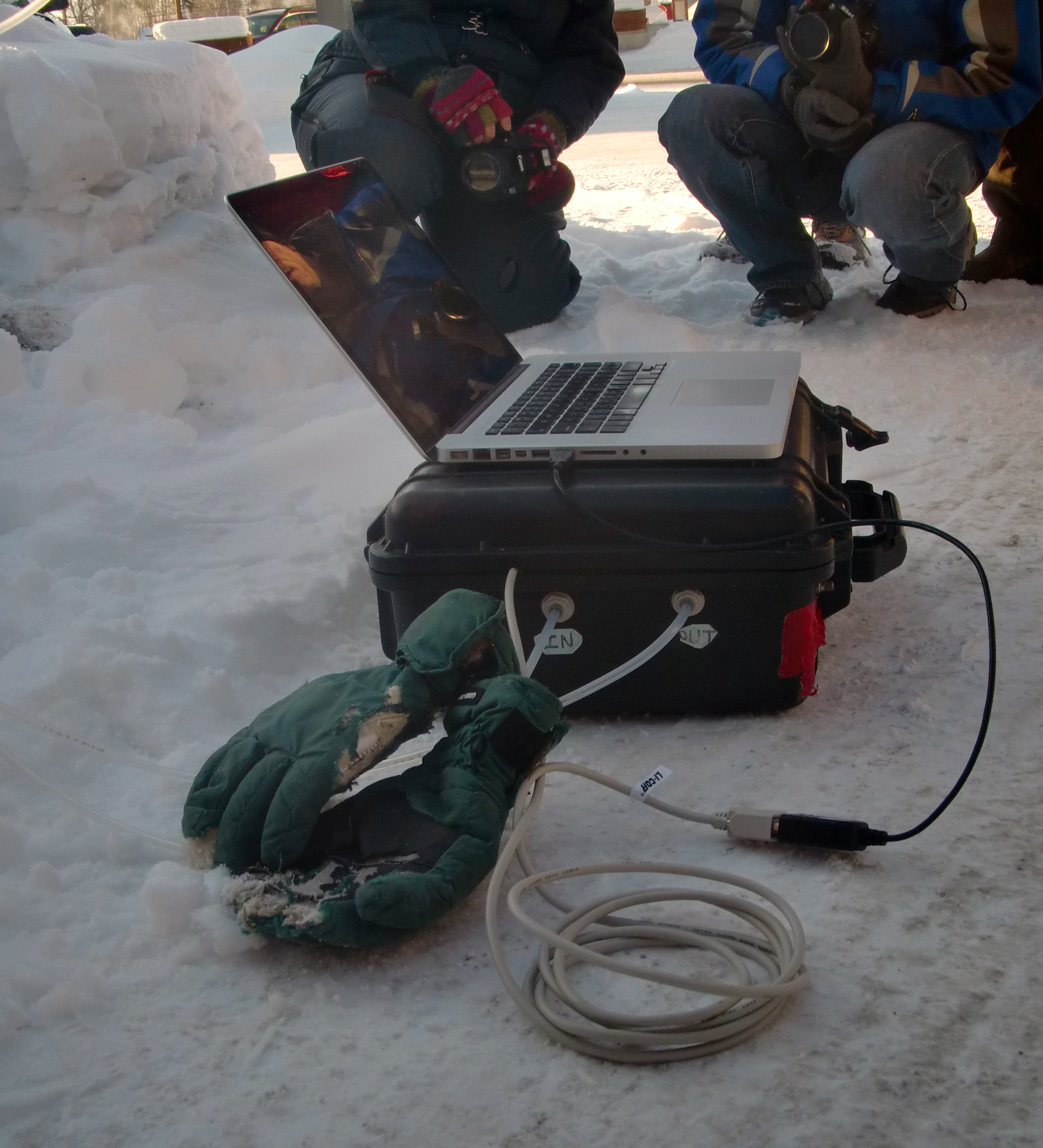 The computer connects to the box that runs air through the soil respiration cap. This way respiration can be measured. The box is called an infrared gas analyzer. Fairbanks, Alaska.