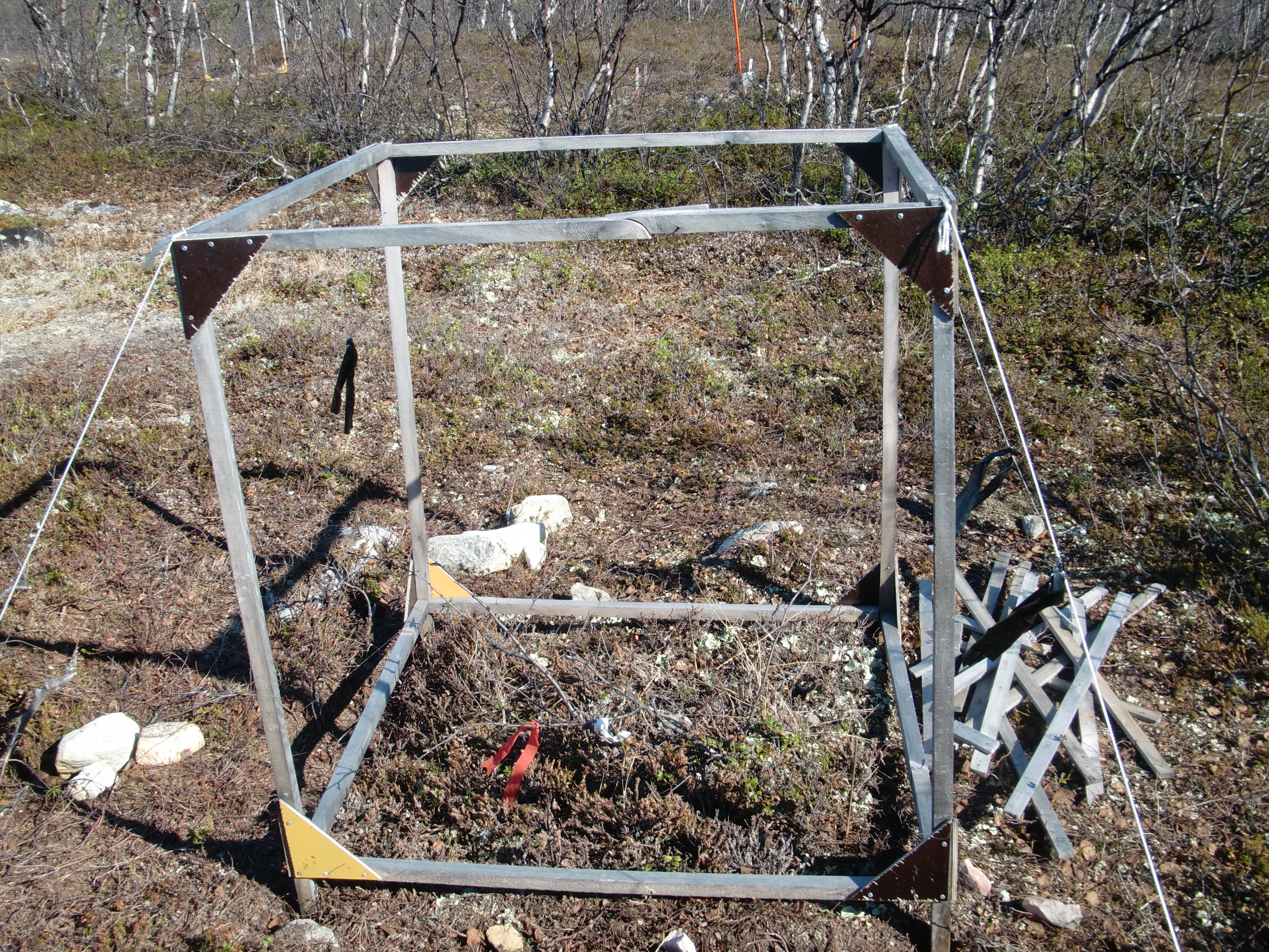 The frames for the vegetation enclosures stay at the research site over the winter. Kevo Research Station, Finland.