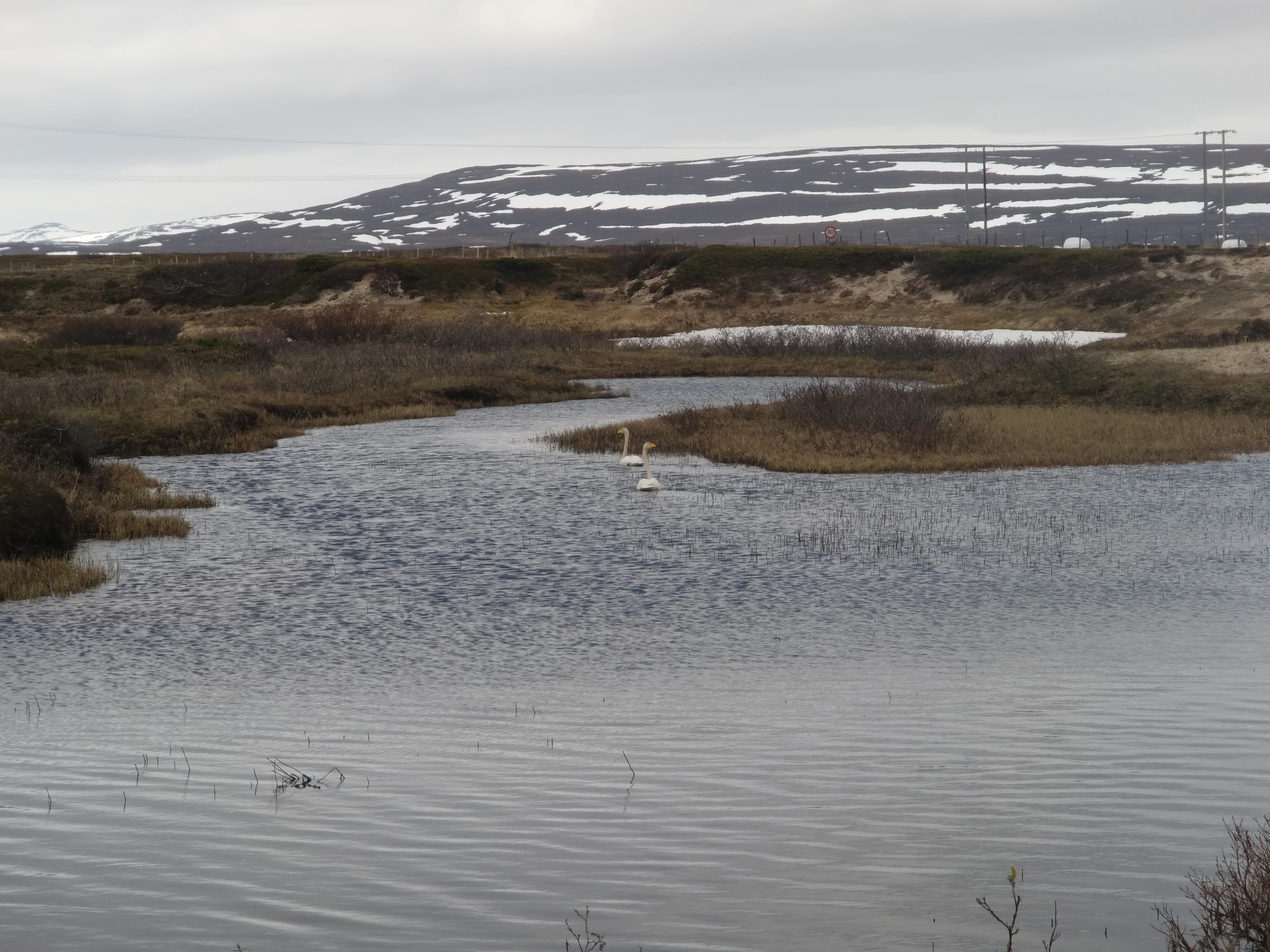 The Whooper Swan (pronounced 'hooper'), is Finland's national bird. These two are in Norway however. Varanger Fjord, Norway.