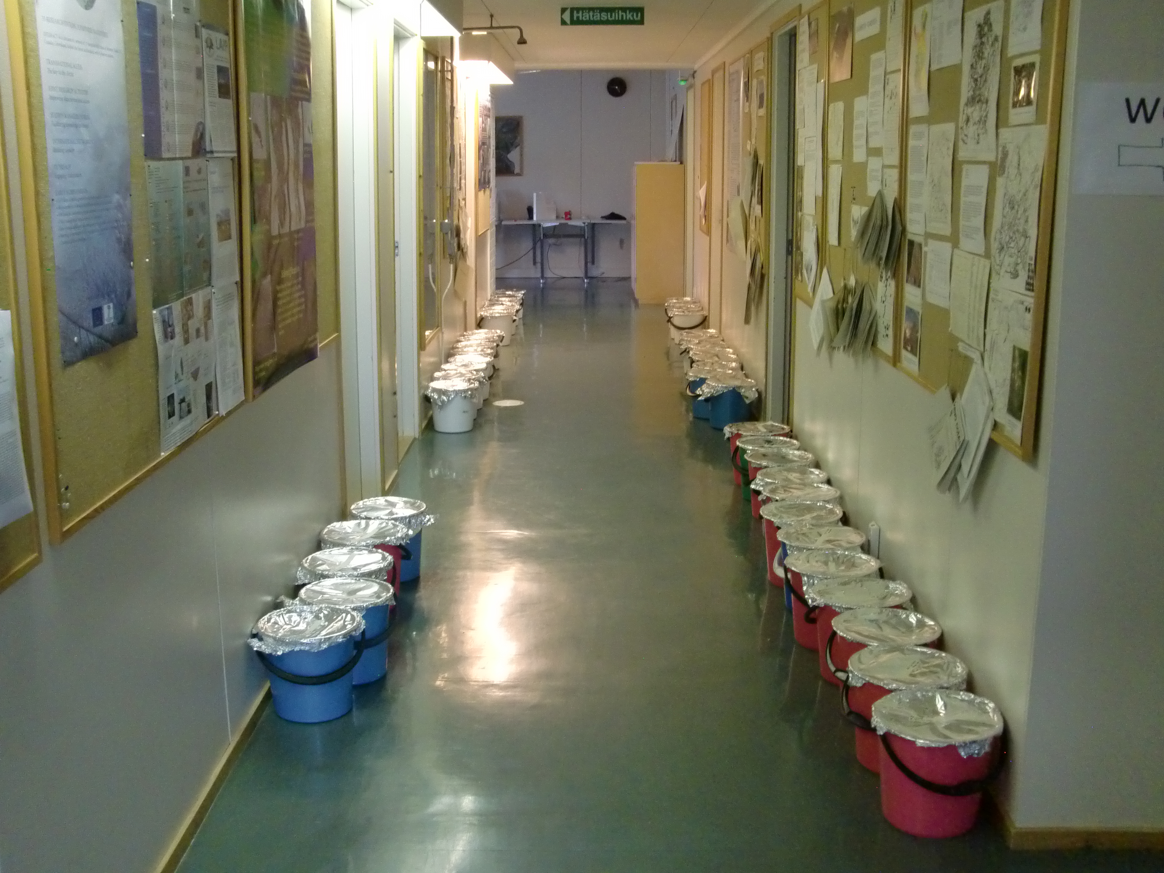 The autumnal moth project takes up a lot of corridor space inside the lab. Kevo Research Station, Finland.