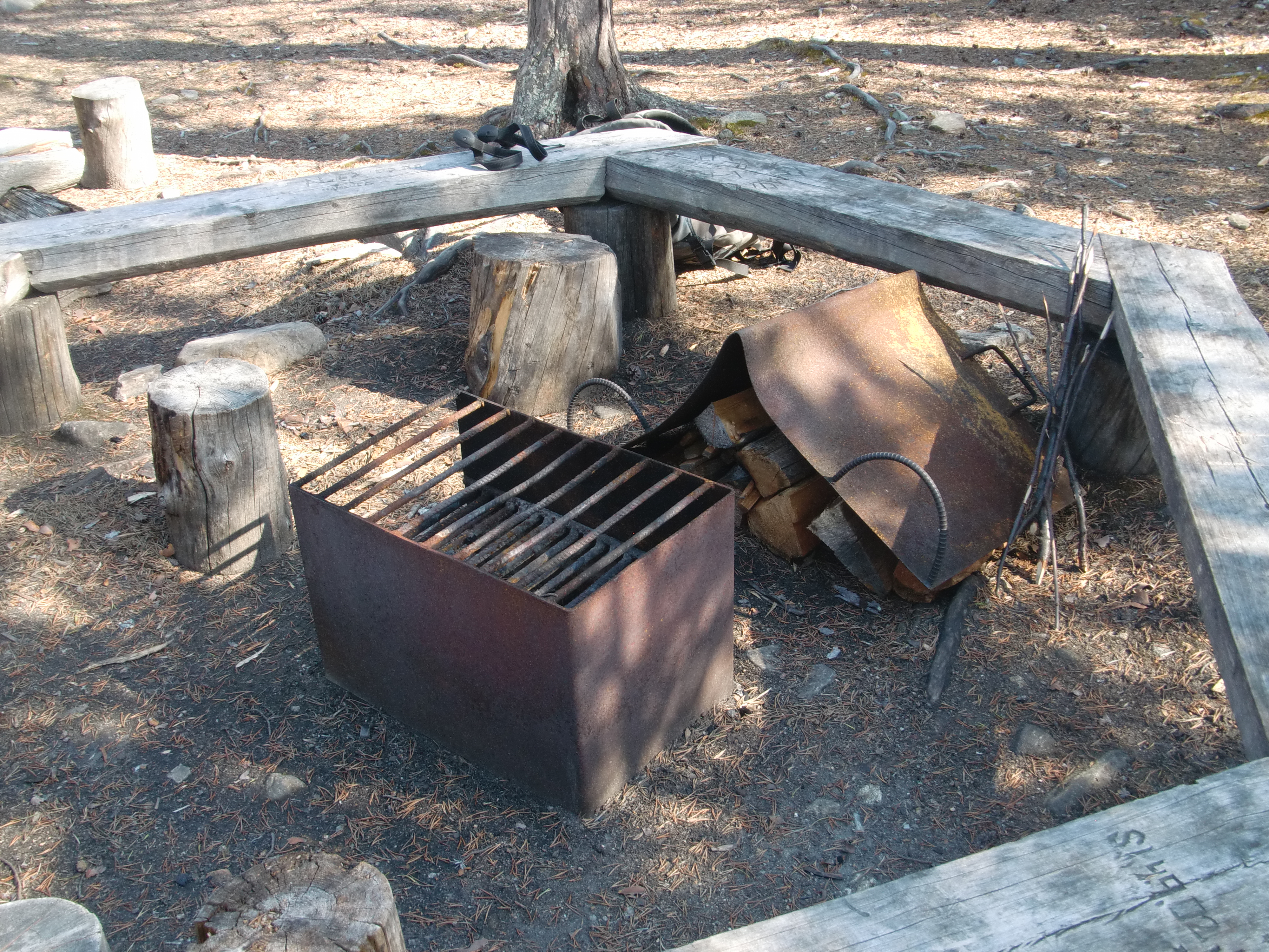 Carol Scott: "Campfires are popular in Finland. I was particularly impressed with the heavy metal cover that kept the kindling dry for the next user. We found these covers at both the trail shelters we passed." Kevo Research Station, Finland.