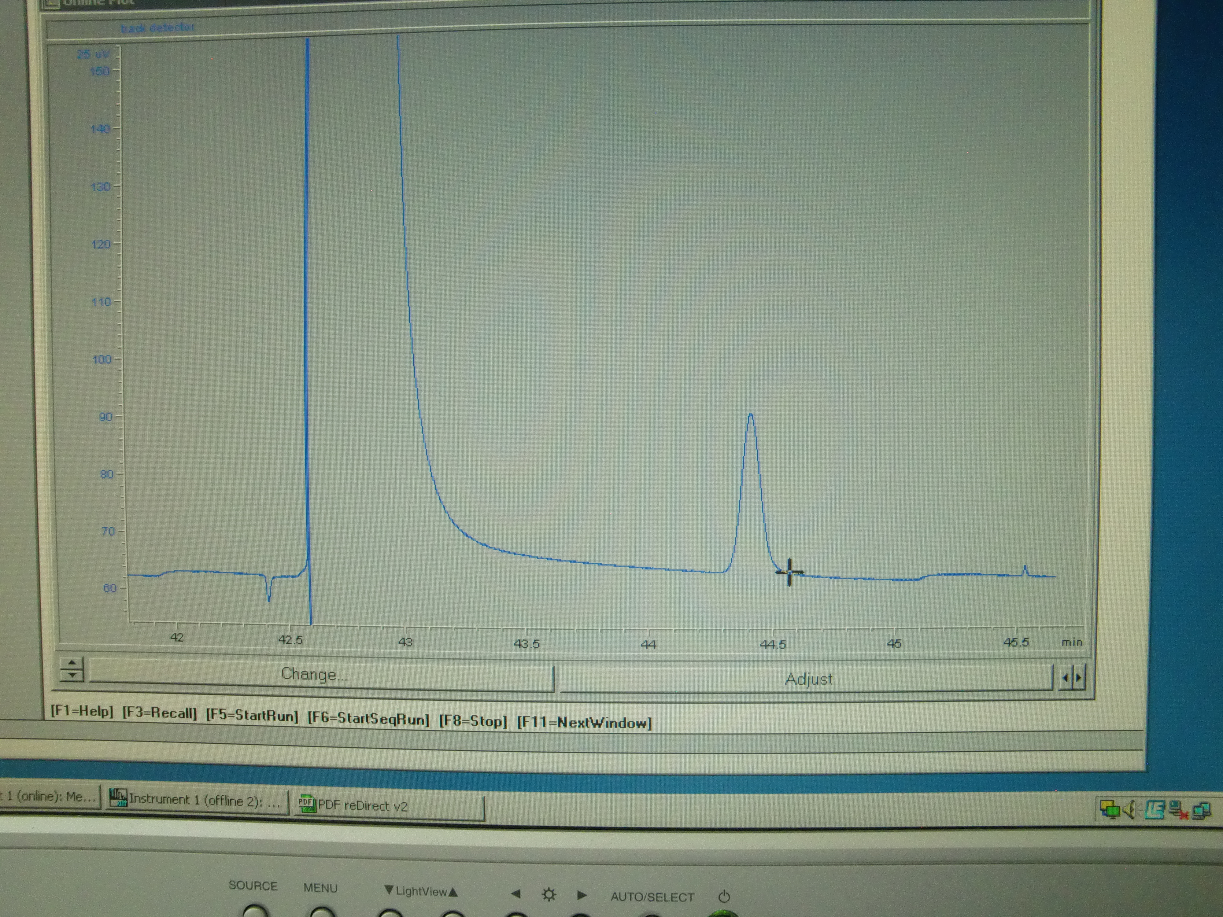 The large peak on the left represents air (mostly nitrogen) in this sample. The smaller peak on the right shows the amount of carbon dioxide in the sample. You can tell that it is carbon dioxide because it shows up at the 1.5 minute mark. Rovaniemi, Finland.