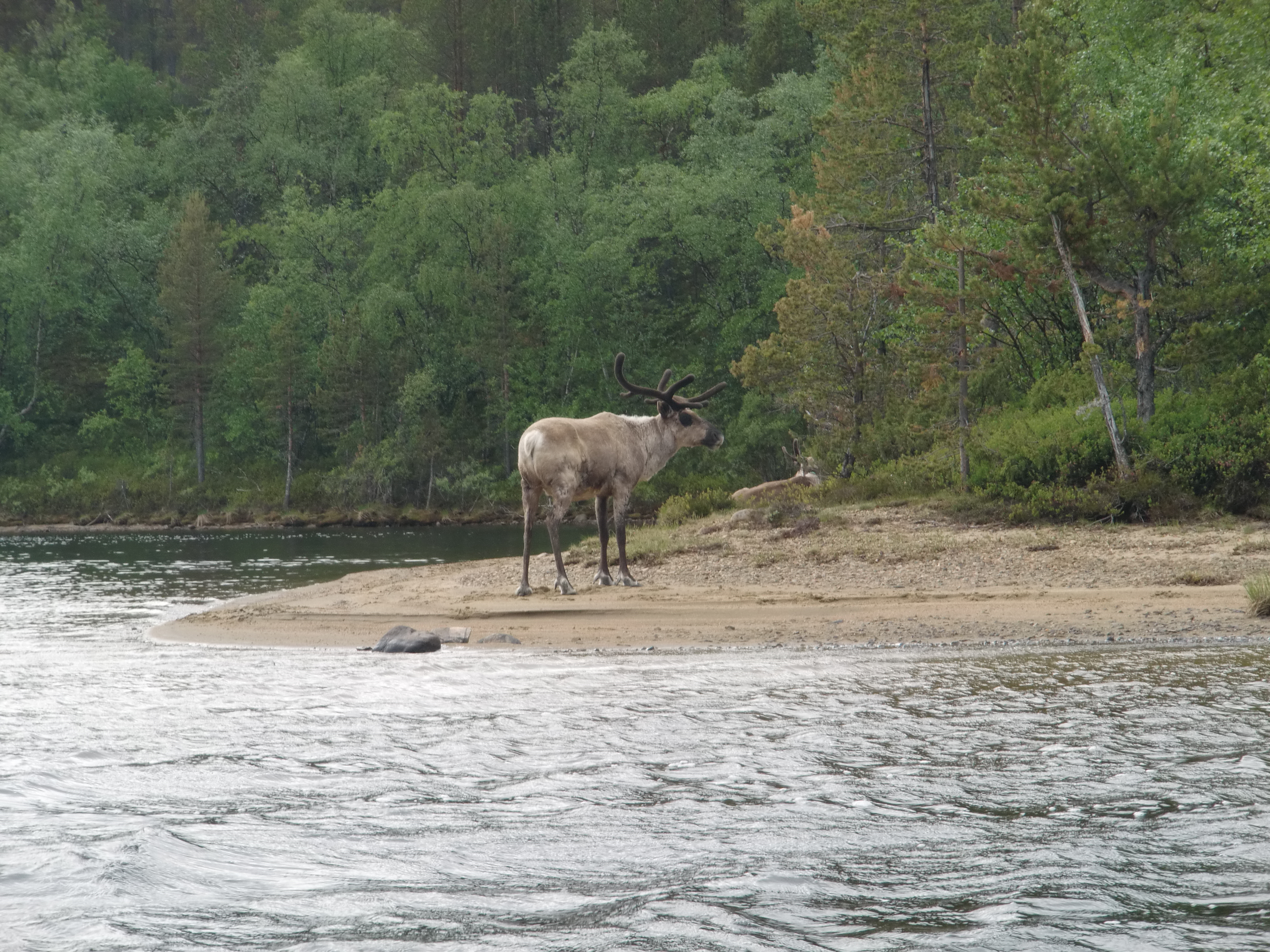 Free-ranging reindeer on the banks of Kevo Lake. Kevo Research Station, Finland.