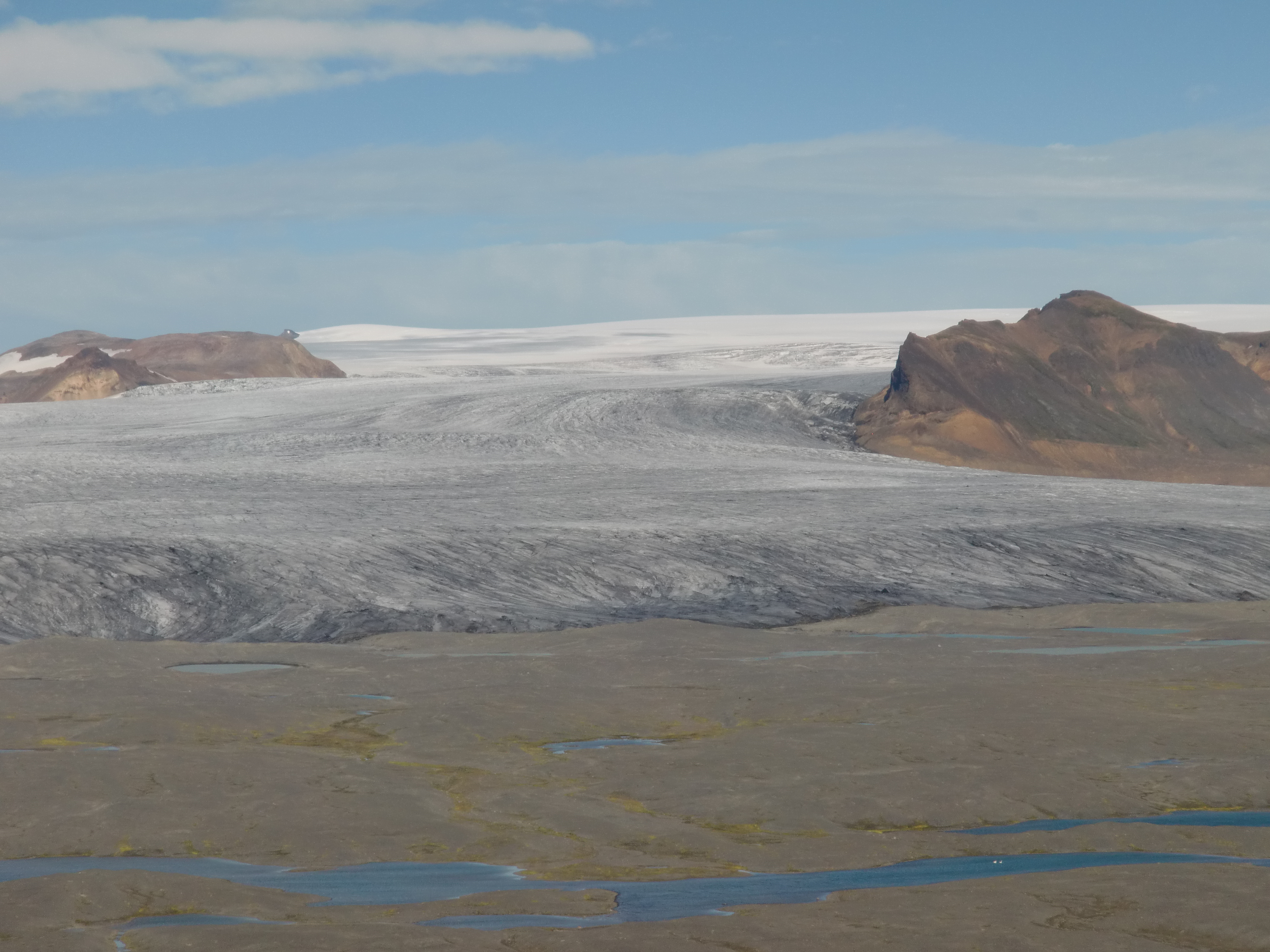 A view of Múlajökul glacier from the helicopter. Jamie Esler: "This was the view I have been waiting to see with my own eyes for about 8 months. It's way cooler now than it was on Google Earth!" At Múlajökul glacier in Central Iceland.