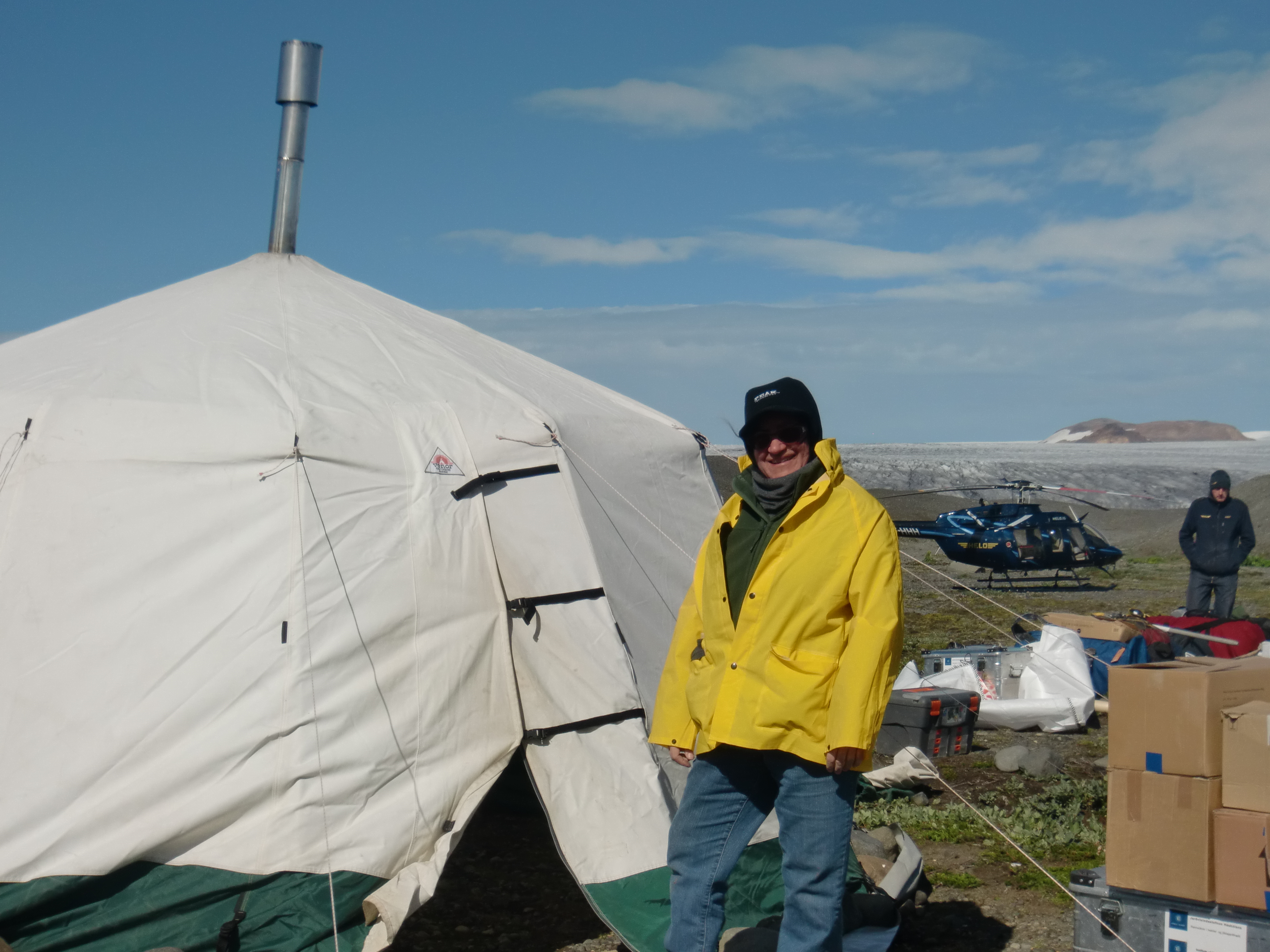 Jamie Esler: "Our Camp Mother Sandy and her freshly constructed cook tent! Our new quote around camp is 'If Momma Sandy ain't happy, then nobody ain't happy!'" At Múlajökul glacier in Central Iceland.