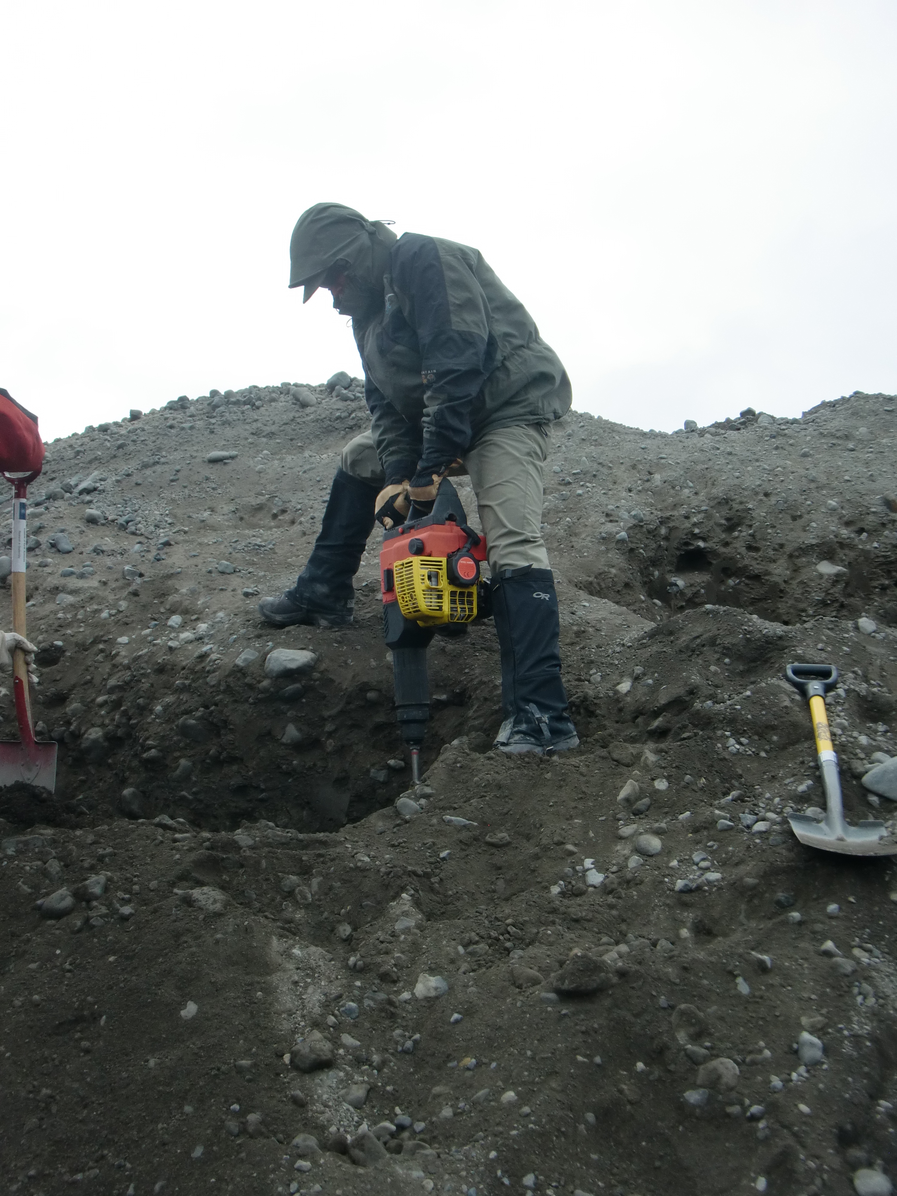 Jamie Esler's first time using a jackhammer. At Múlajökul glacier in Central Iceland.