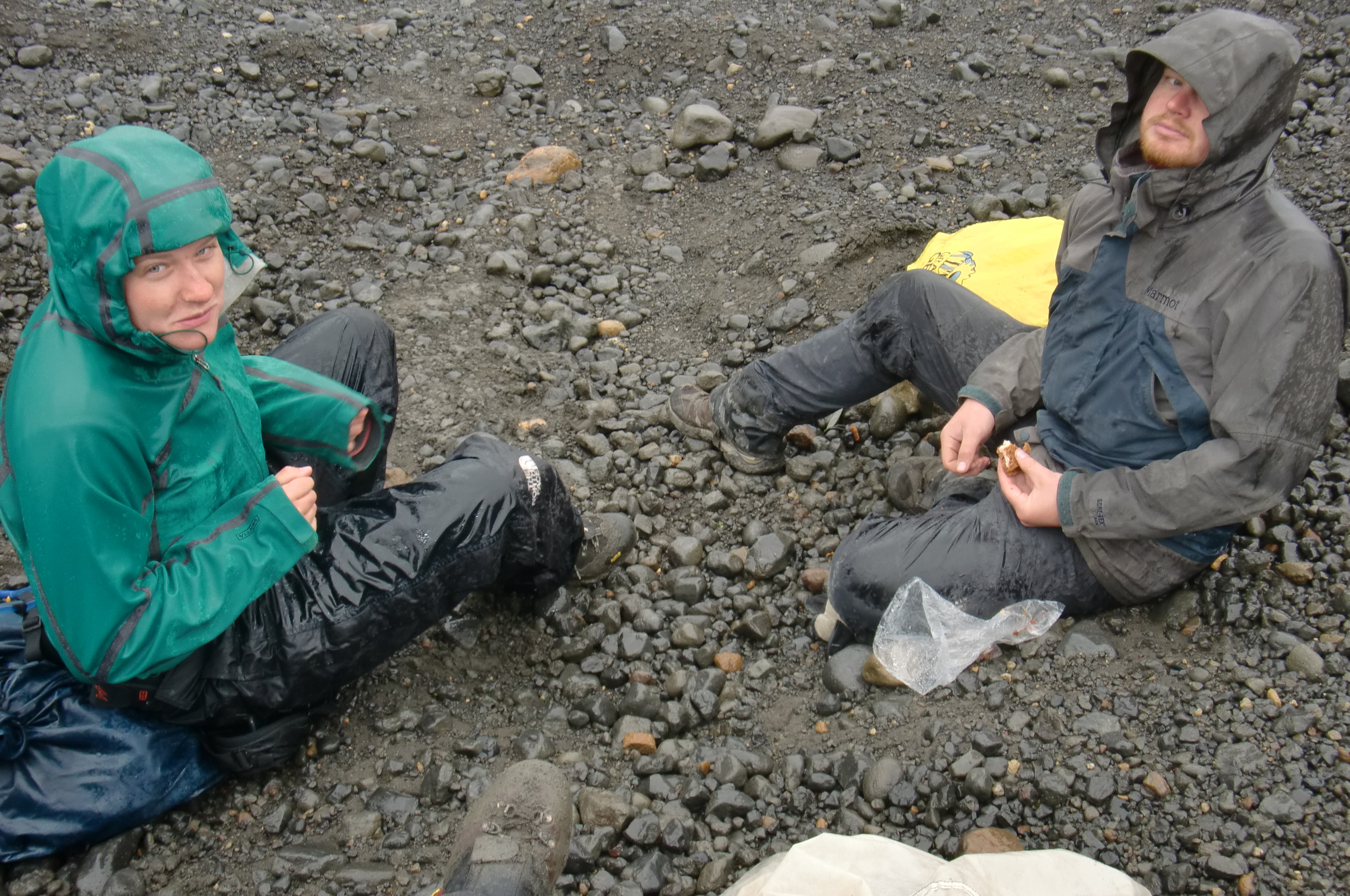 Jamie Esler: "We ate our lunch in the rain before cleaning up our tools and making our way back to camp." At Múlajökul glacier in Central Iceland.