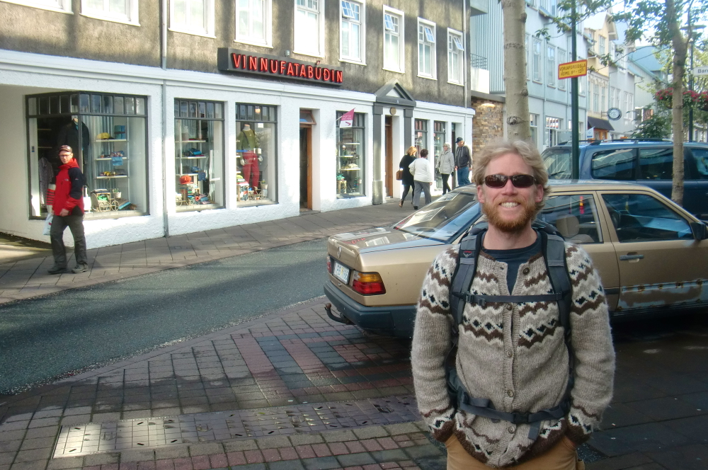 Jamie Esler: "Enjoying my new Icelandic sweater while strolling around downtown." Reykjavík, Iceland.