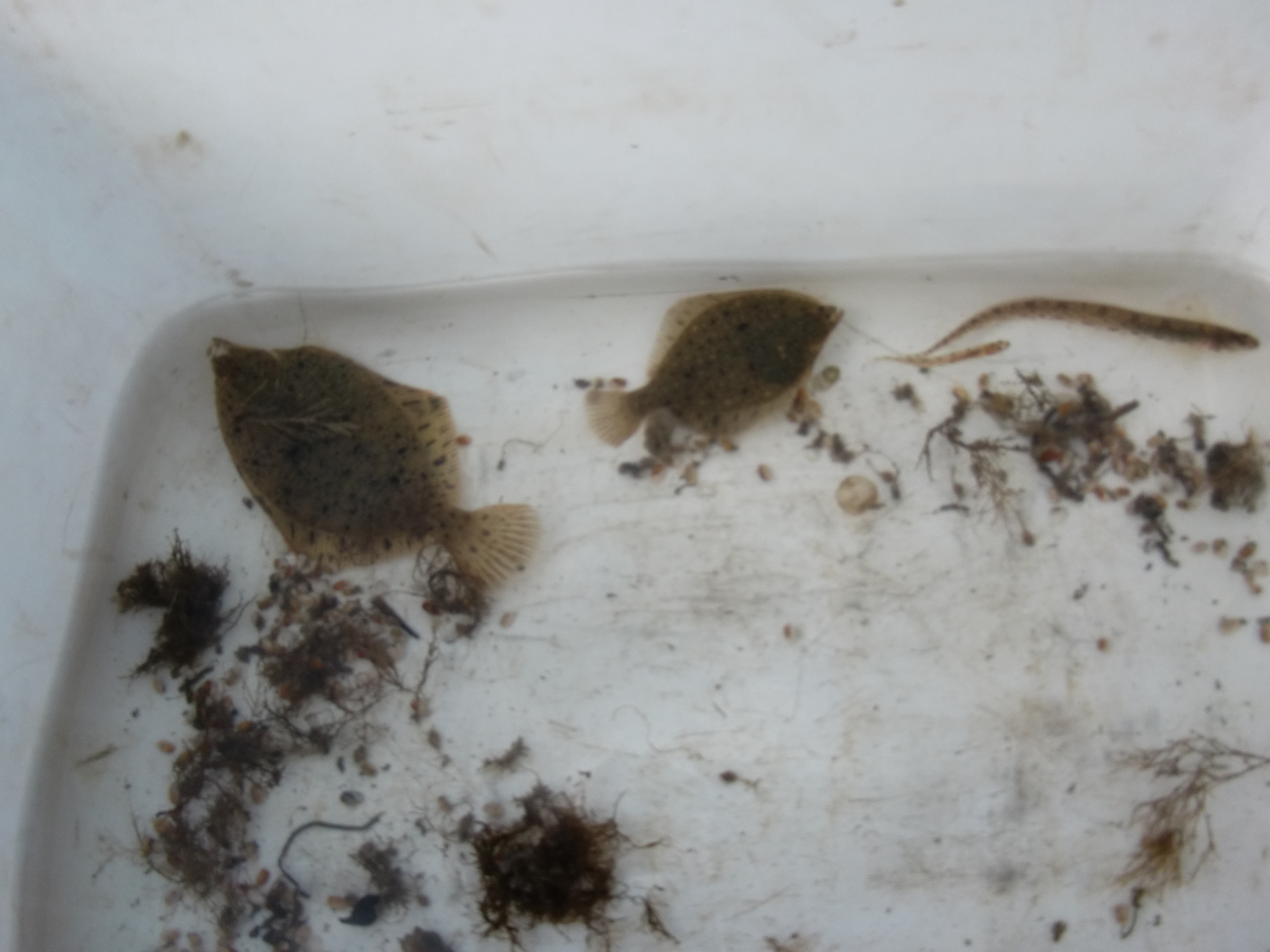 Two Arctic flounders and a Lumpenus fabricii. Kaktovik, Alaska.