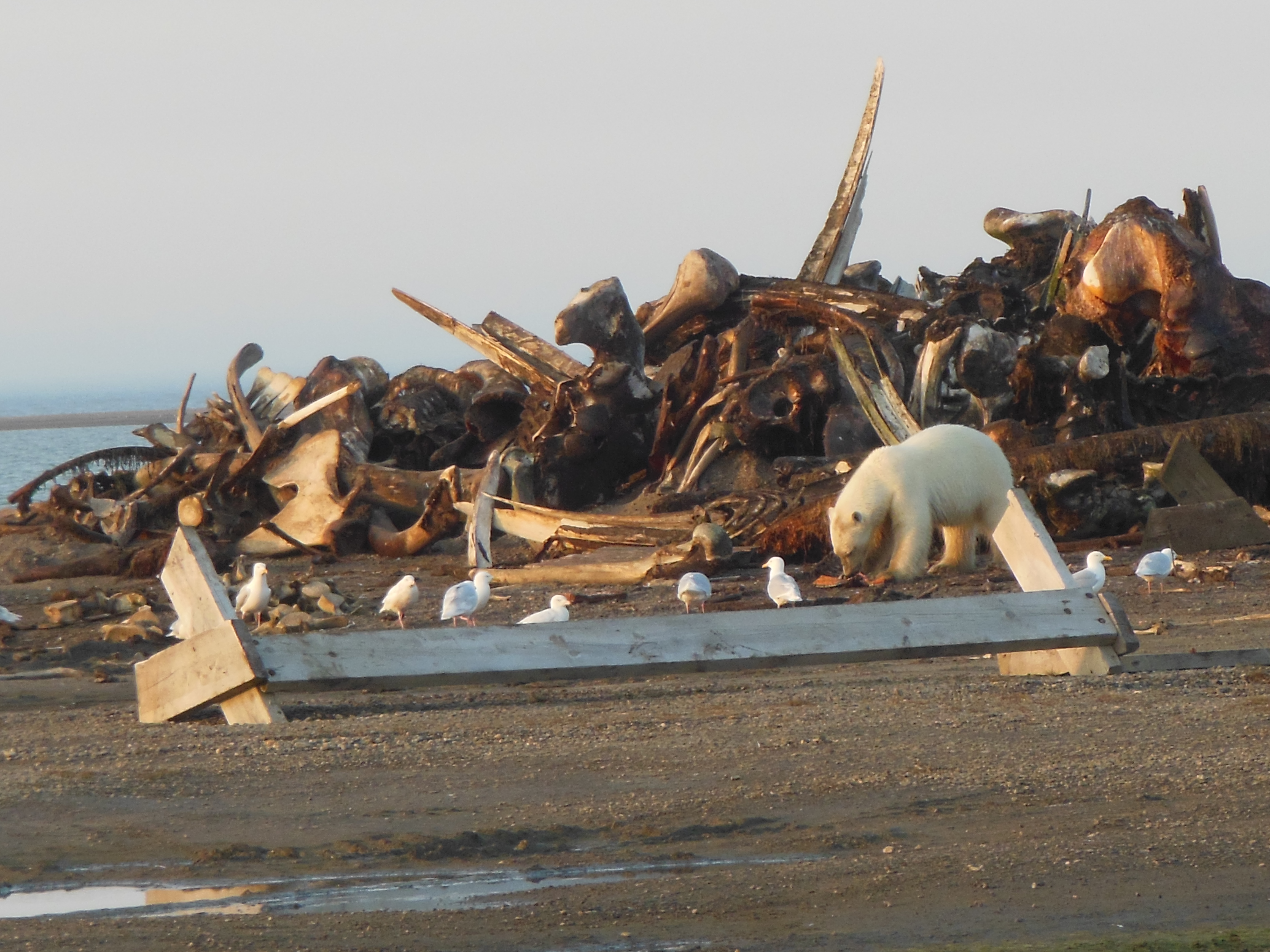 Discarded whale carcasses and bones are piled at this location in the bone pile. It attracts polar bears in the whaling season in September. Kaktovik, Alaska.