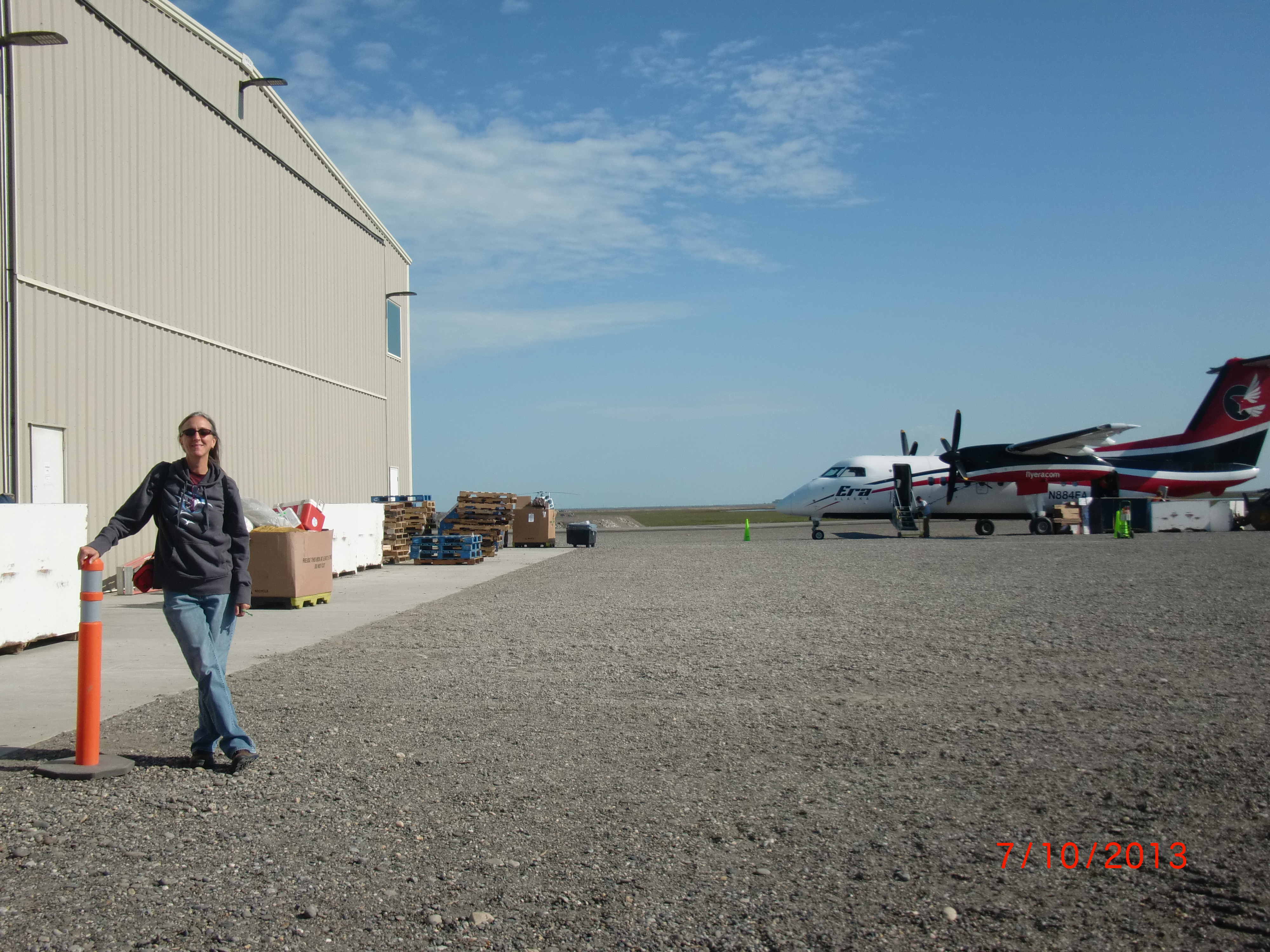 Jill Smith is ready for her flight to Kaktovik, Alaska. Deadhorse, Alaska.