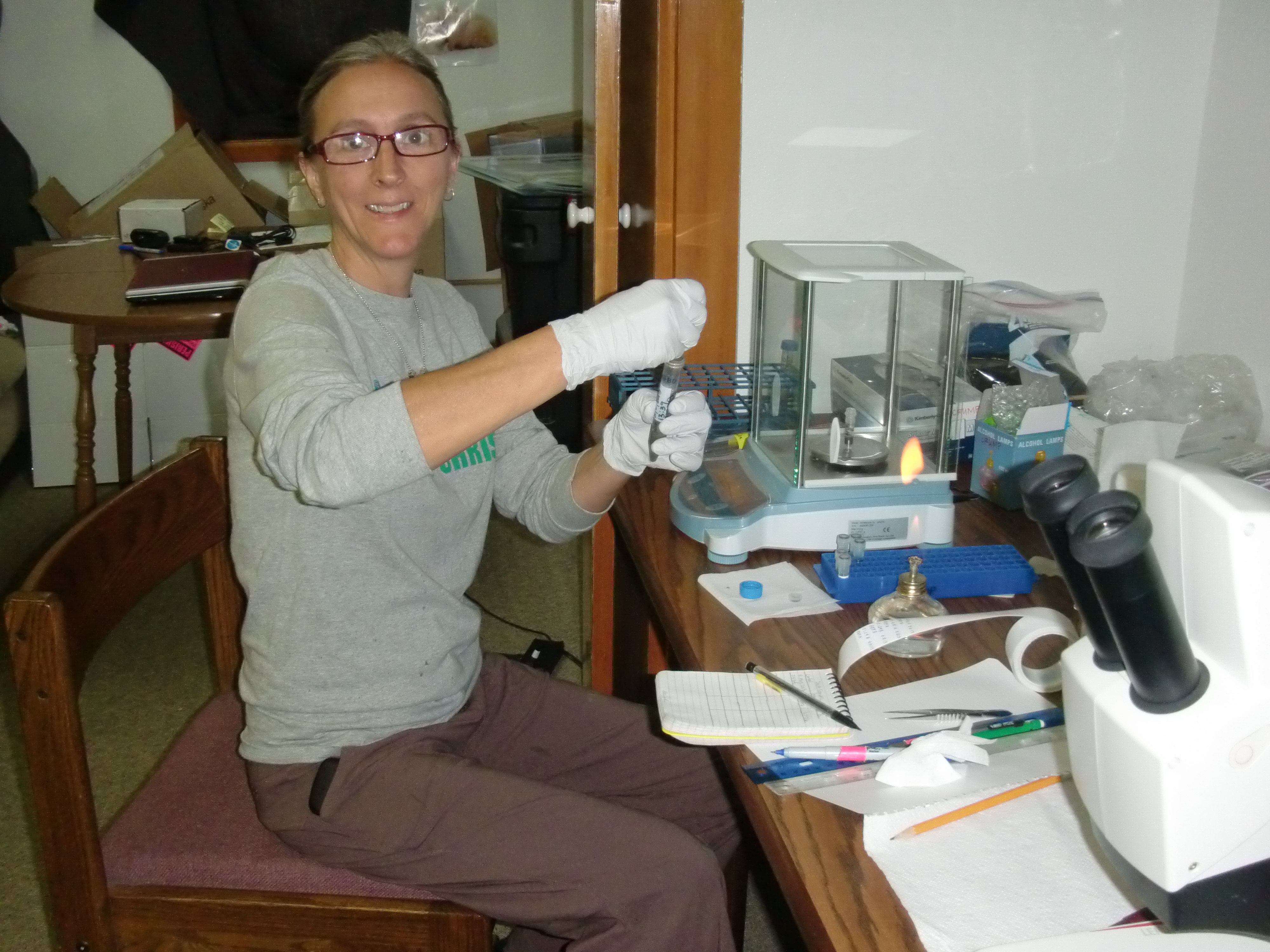 Jill Smith works in the lab in Kaktovik, Alaska.