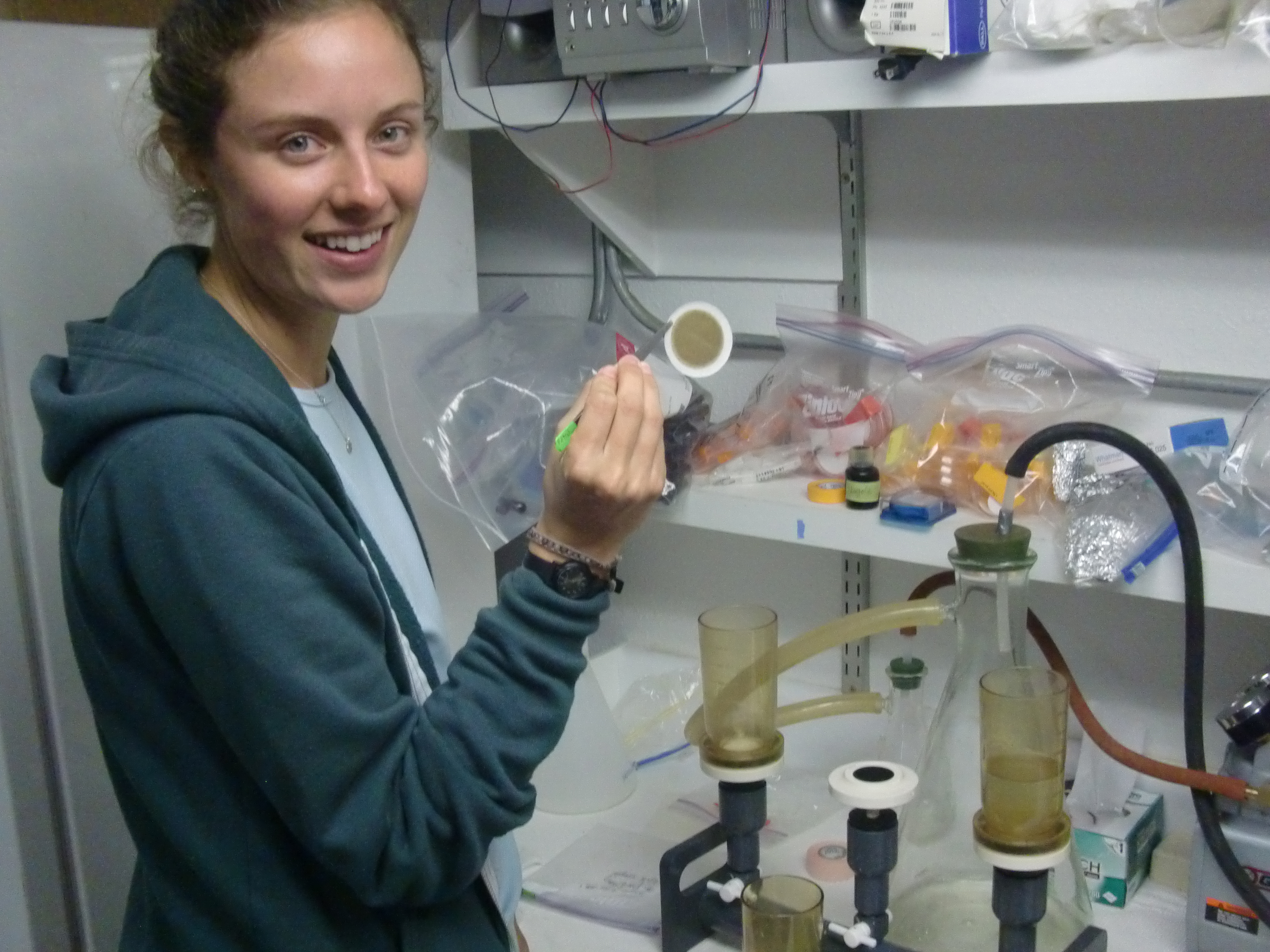 Carrie Harris holds the final product after the filtering process is complete. Kaktovik, Alaska.