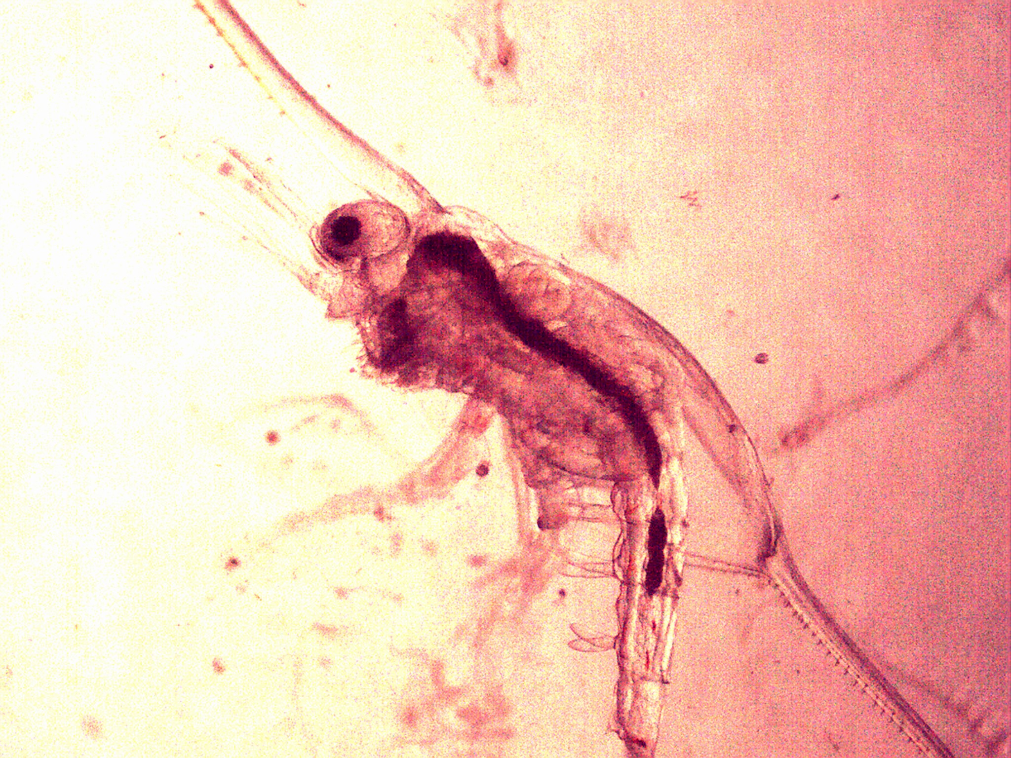 Zooplankton (sub-phylum crustacea) from Springs School student plankton-tow water sample. This sample was taken from Three Mile Harbor near East Hampton, New York. At Springs School in East Hampton, New York.