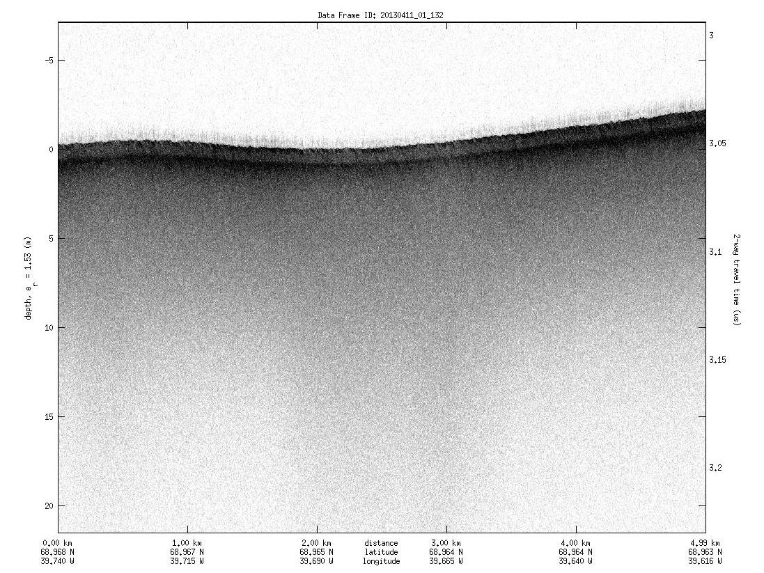 The Ku radar only 'sees' a few meters into the snow and ice, but can generated very detailed images of the surface.