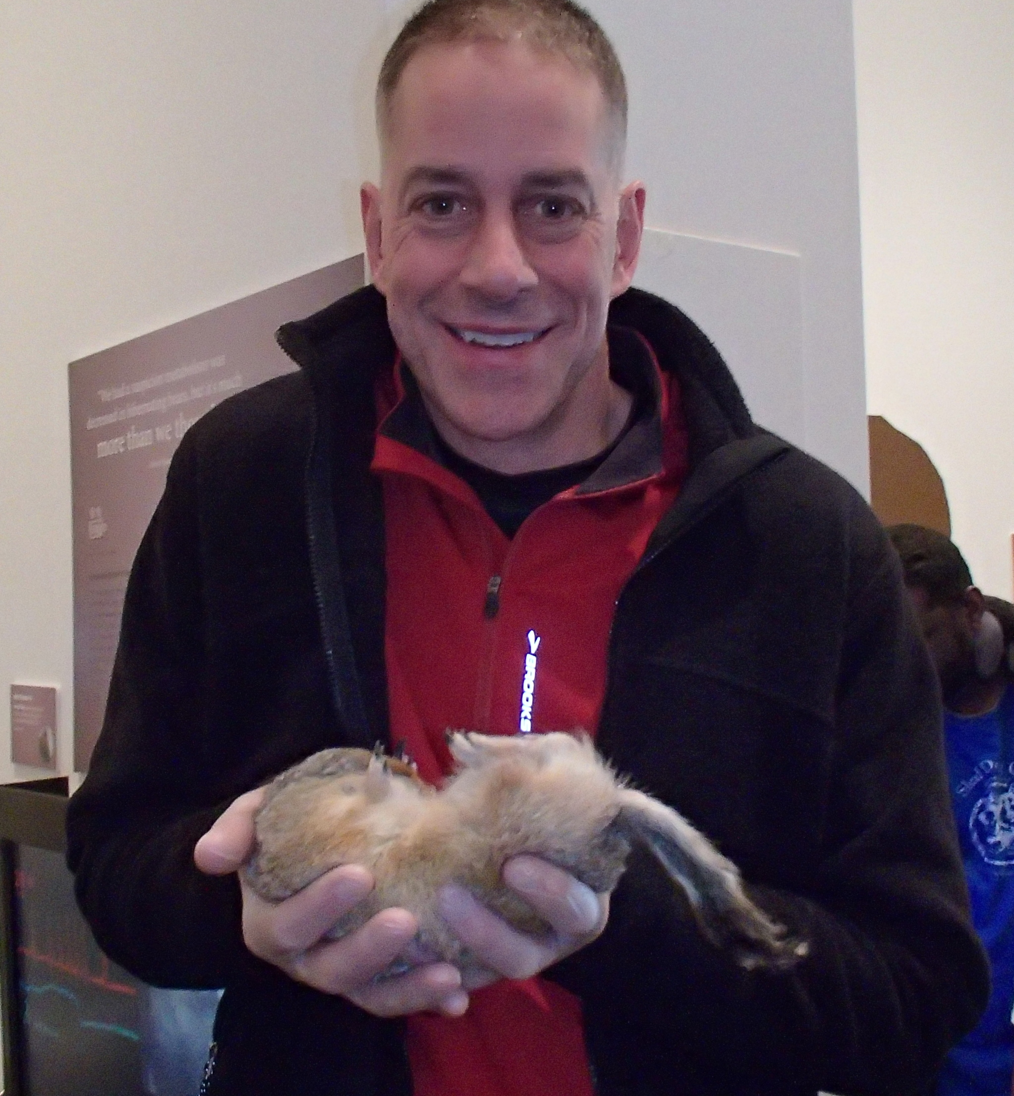 Mark Buesing holds an Arctic ground squirrel while it hibernates. Their core temperature drops as low as -2.9 C which is below the freezing point of water. At the University of Alaska's Museum Of The North. Fairbanks, Alaska.