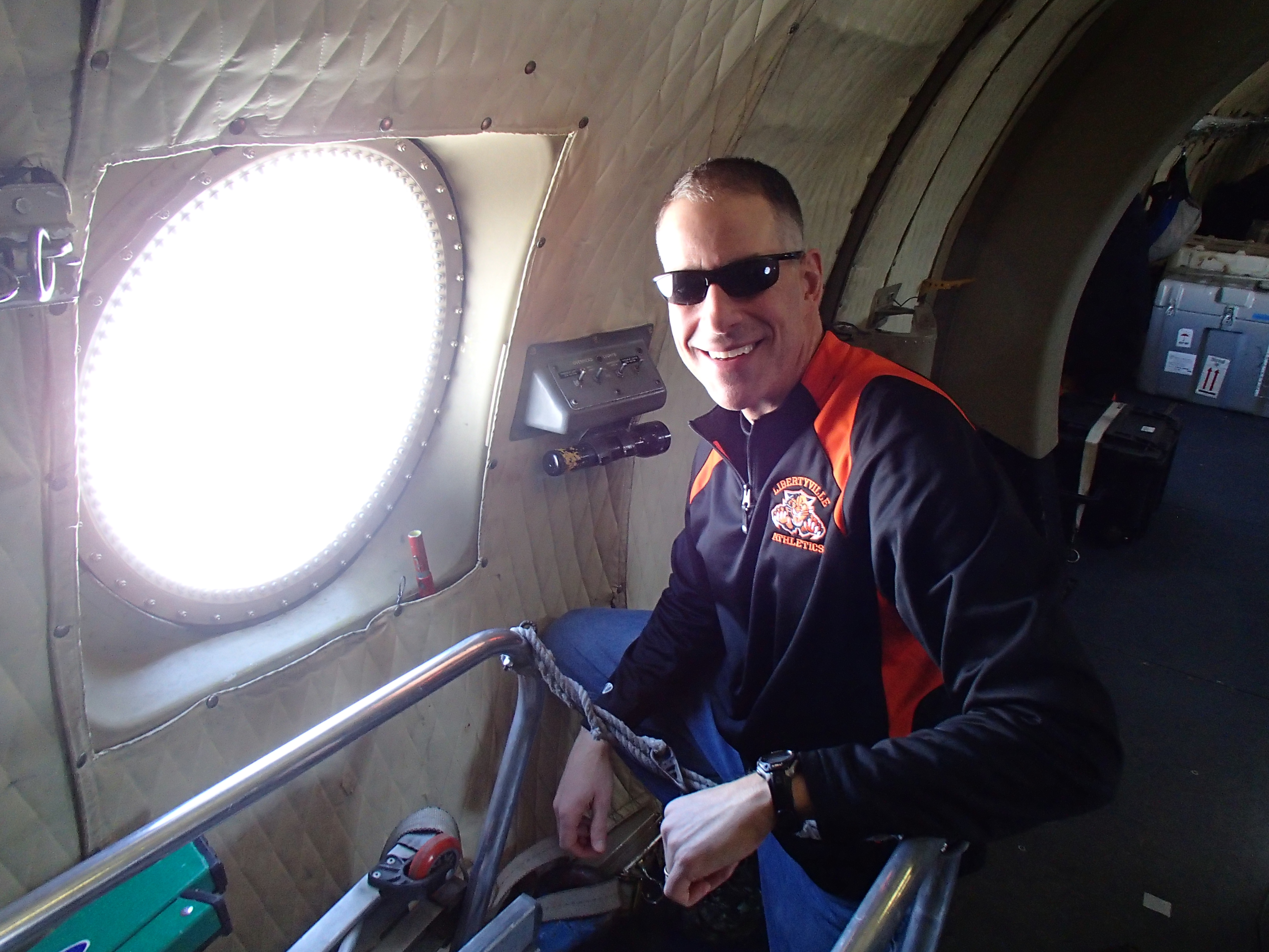 Mark Buesing spent several hours taking photos from this window during the flight over glacial landscapes. Greenland.