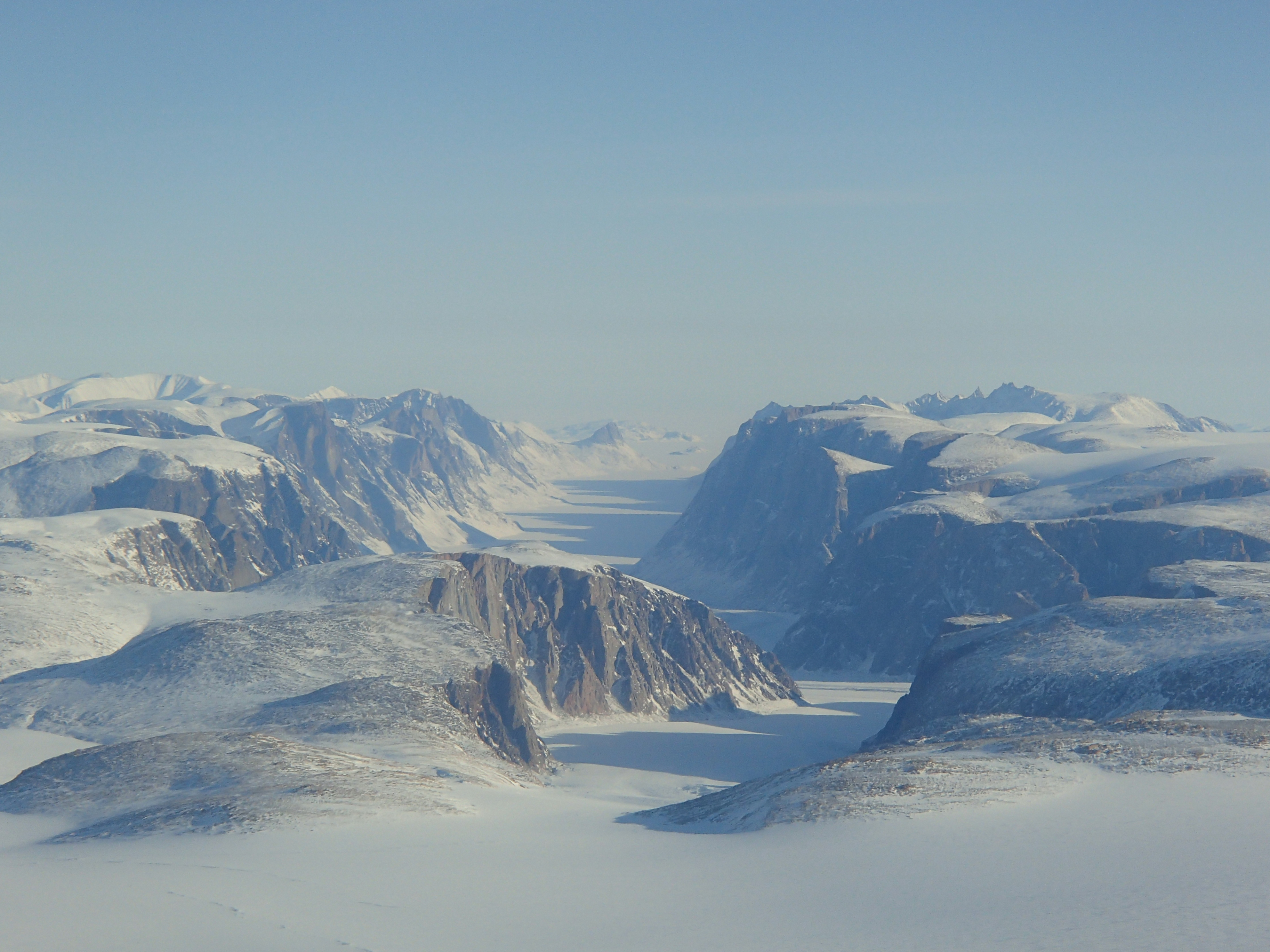 A view of Baffin Island, Canada from the air. Mark Buesing: "It looked like Yosemite Valley except buried in snow and ice."