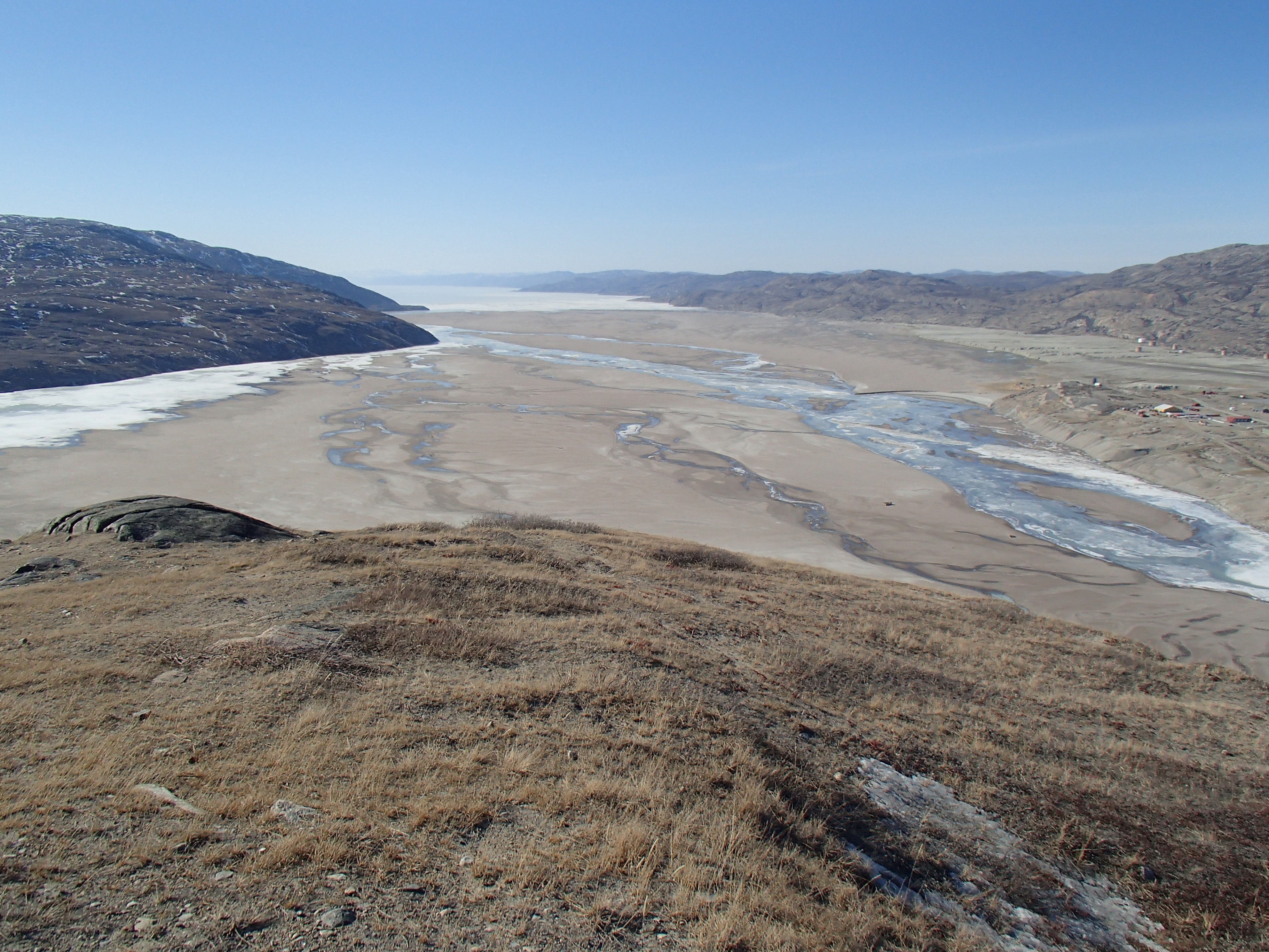 A view out toward the Kangerlussuaq fjord. It's one of the longest in Greenland at 190 km or 120 miles. Kangerlussuaq, Greenland.