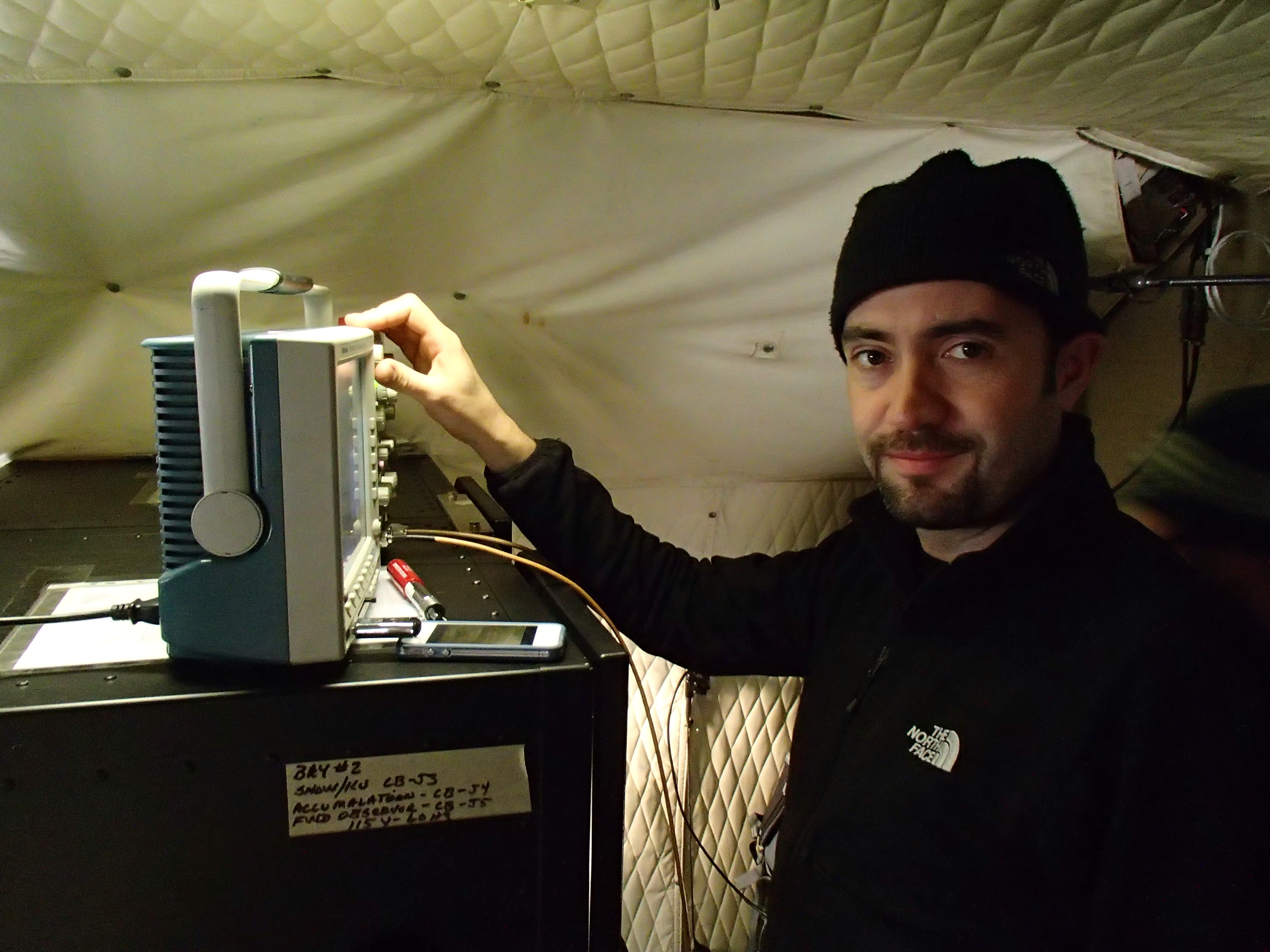 Bruno Camps-Raga checks the radar. Kangerlussuaq, Greenland.