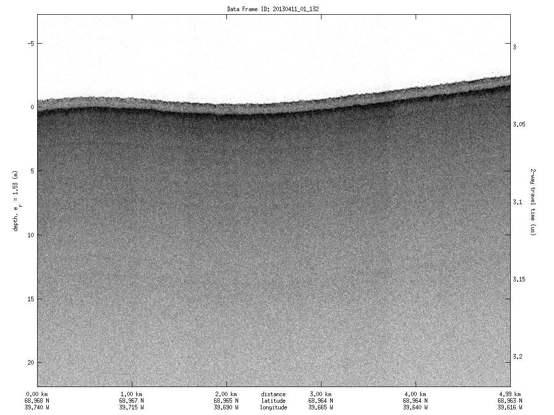 This image is generated from the snow radar data. Kangerlussuaq, Greenland.