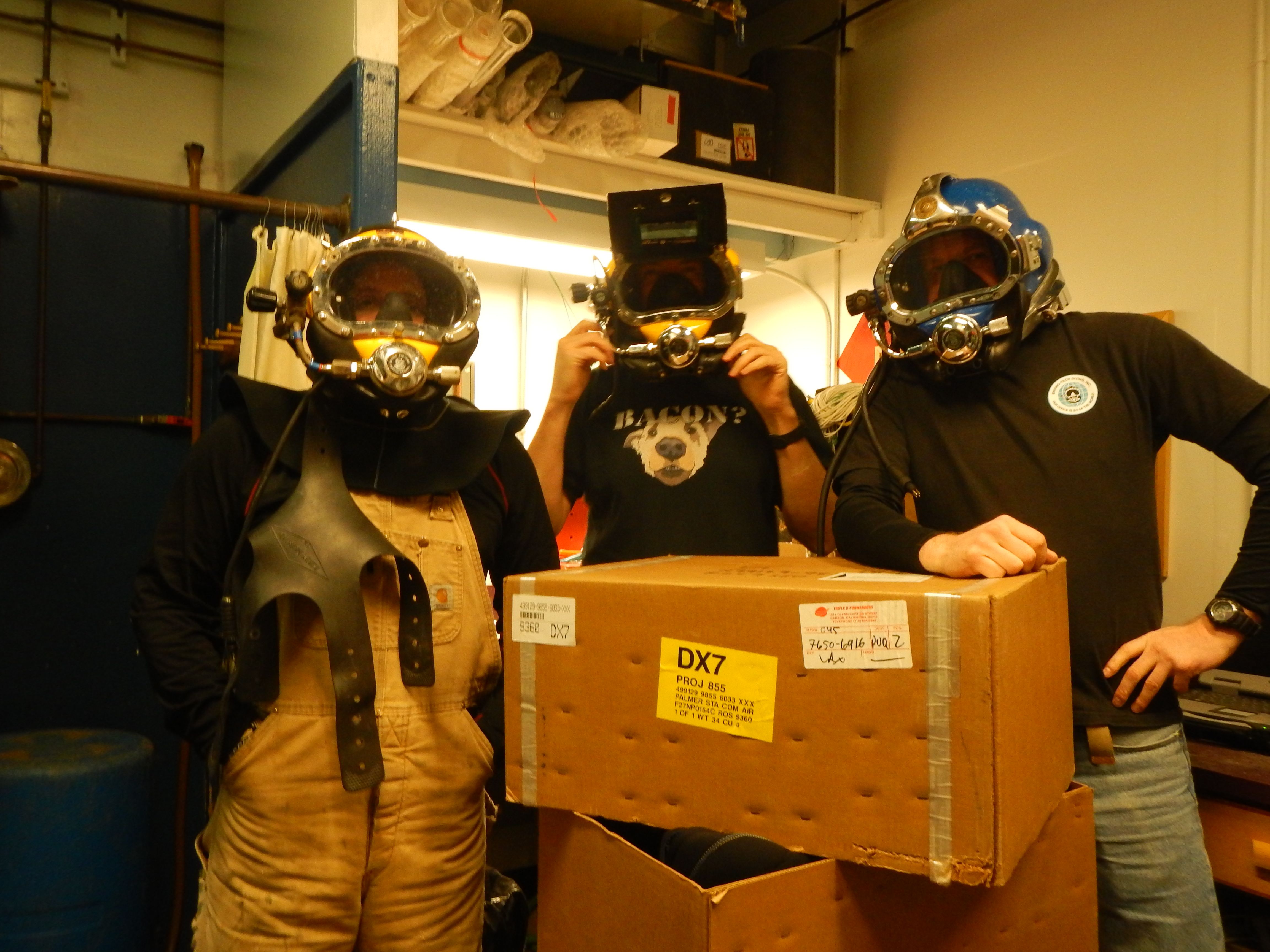 Christian Clark, Stever Rupp, and Britt Coates make up the dive team that will begin construction of the new boat ramp at Palmer Station, Antarctica.