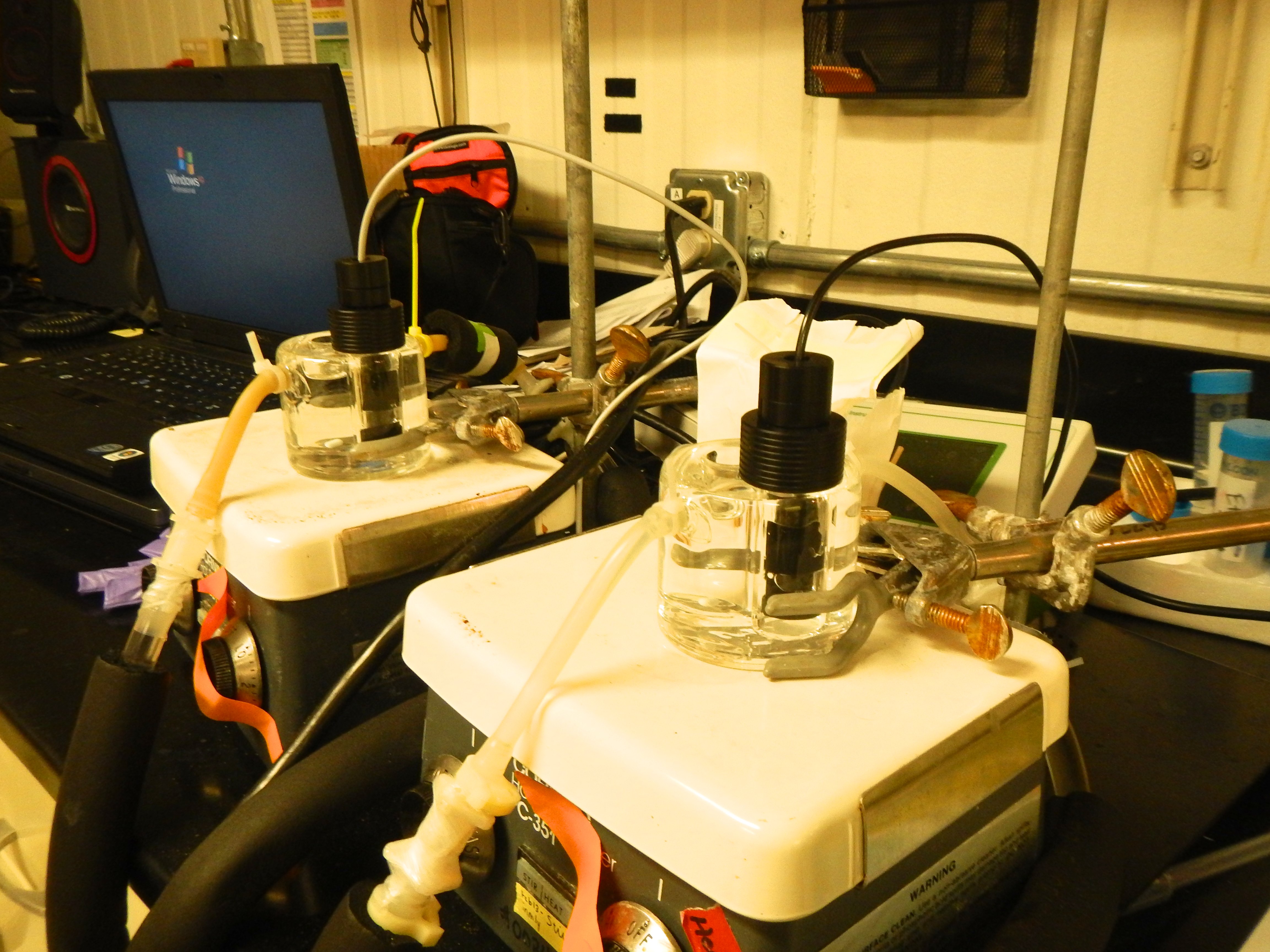 A respirometer measures oxygen consumption of individual cells. Palmer Station, Antarctica.